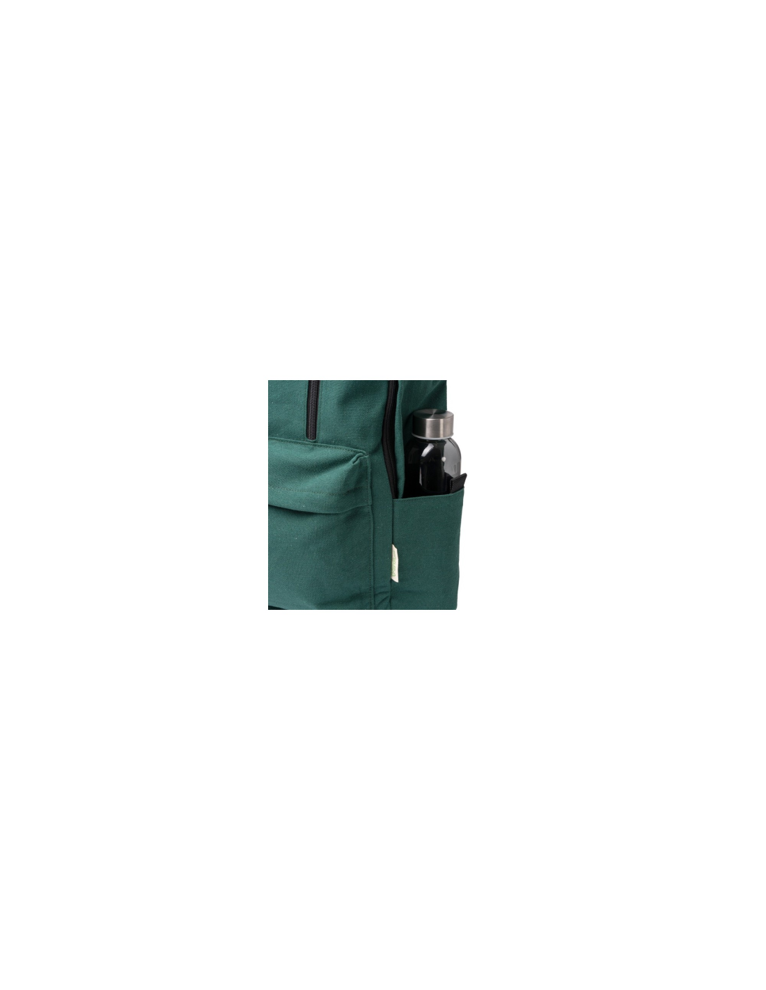 Plecak wykonany z bawełny pochodzącej z recyklingu o gramaturze 330 g/m². Duża komora główna z wewnętrzną kieszenią na laptopa o przekątnej 15 cali. 2 kieszenie zewnętrzne z zapięciem na zamek błyskawiczny oraz 2 kieszenie boczne. Wyściełane uchwyty i plecy. Pojemność: 20 l.