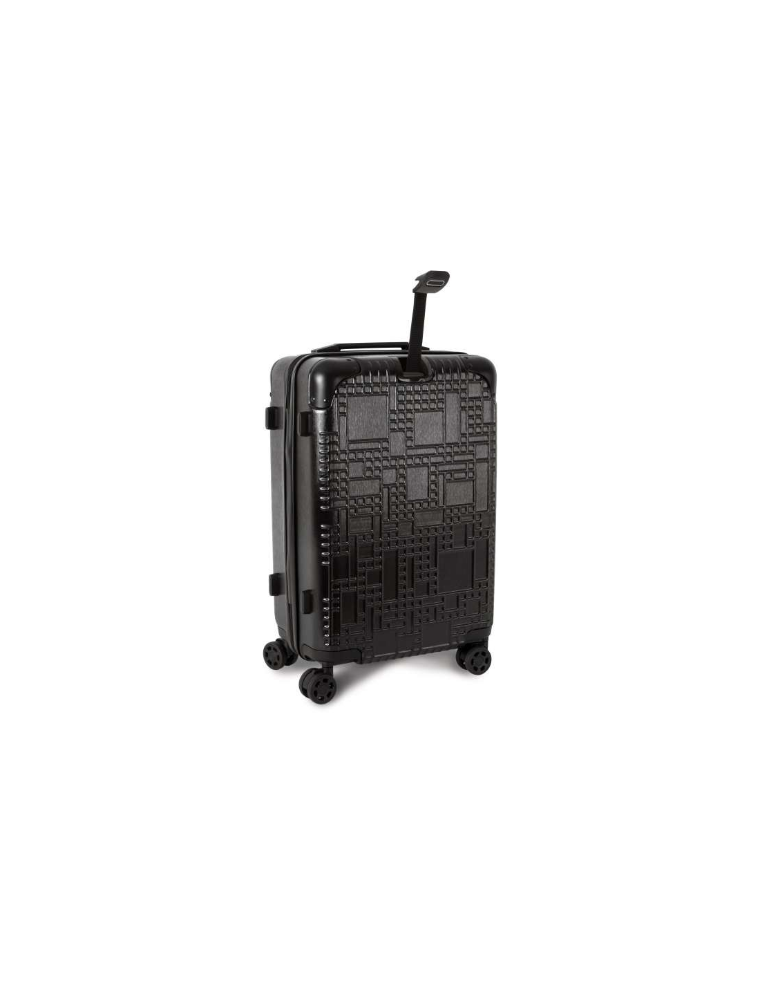 - With a geometric “Geoline” design, this aluminium trolley has 4 multidirectional wheels and side protection feet for laying the case on its side