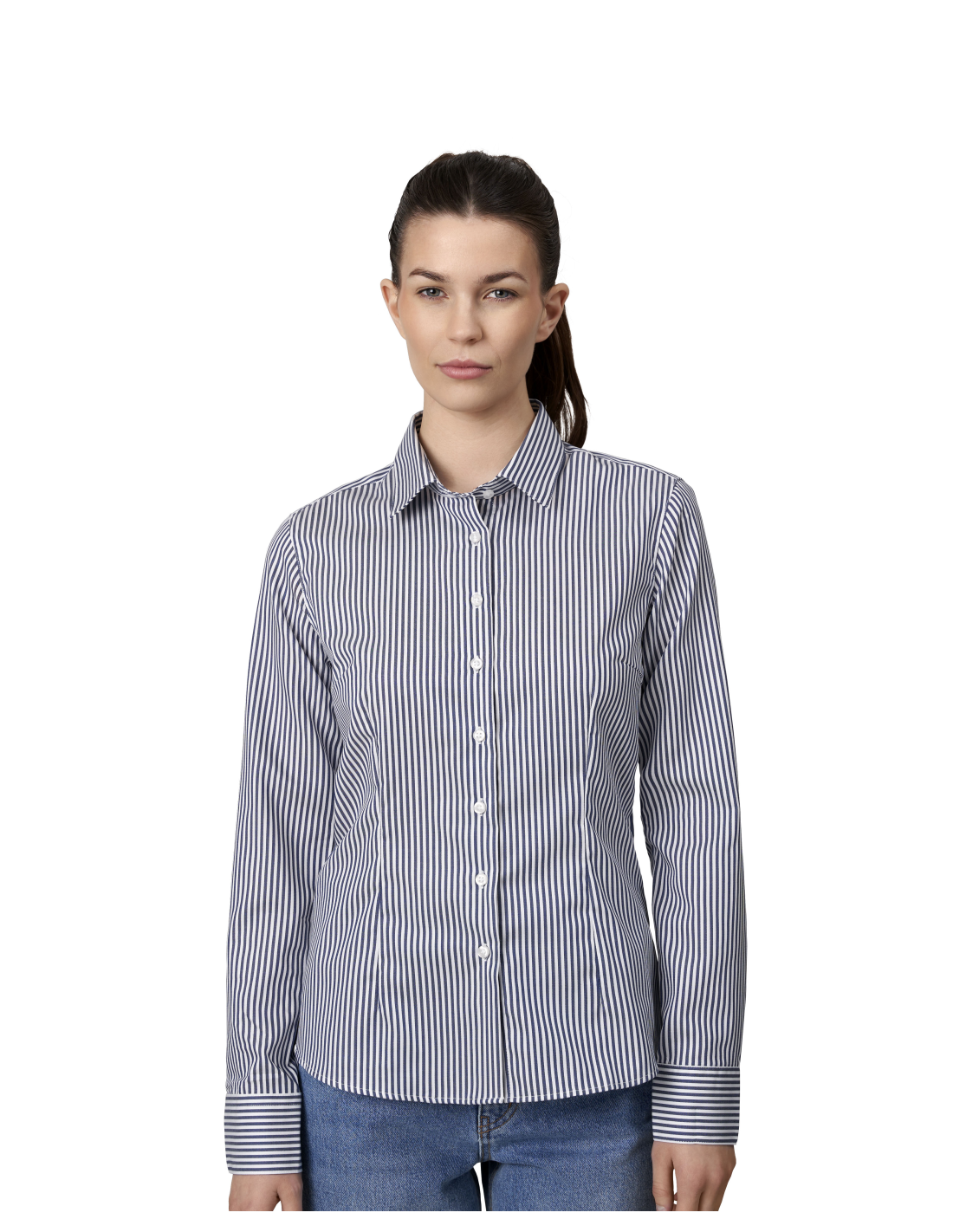 Nowoczesna koszula kadet business z tkaniny fine twill z wykonczeniem non iron. Klasyczny damski model o modnym i wygodnym kroju. Lekko dopasowana.