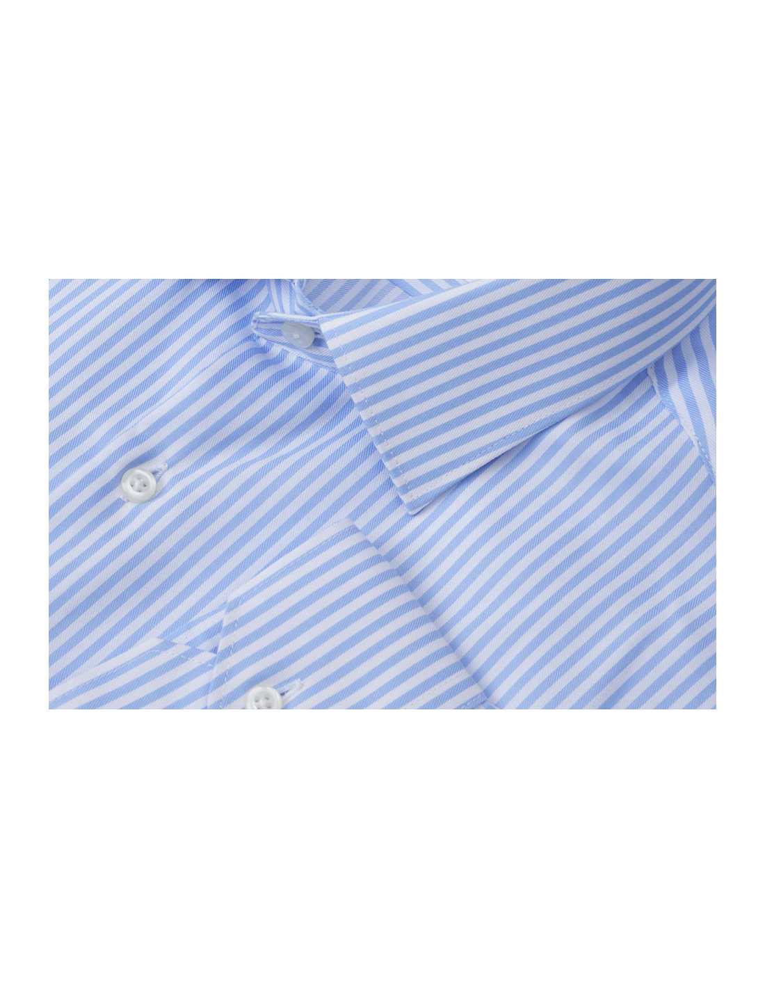 Koszula została wykonana z wysokiej jakości materiału typu fine twill, który cechuje się gładką strukturą i estetycznym wykończeniem. Tkanina dobrze układa się na sylwetce i zapewnia komfort noszenia przez cały dzień. Dopasowany krój (slim fit) podkreśla sylwetkę, zachowując wygodę użytkowania.