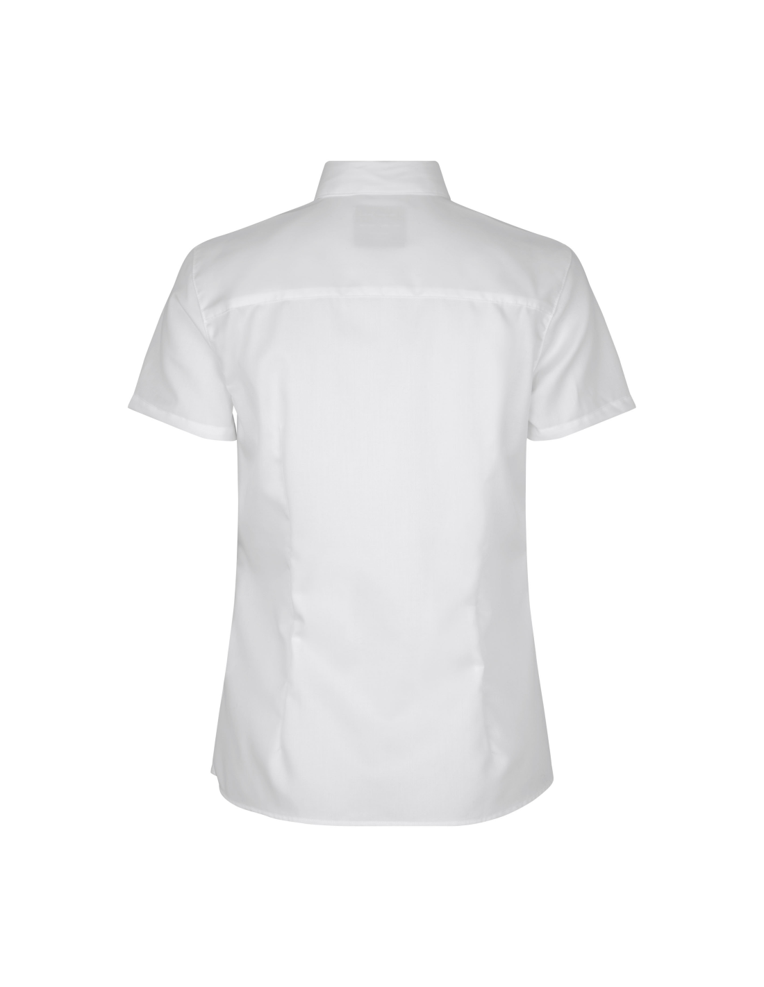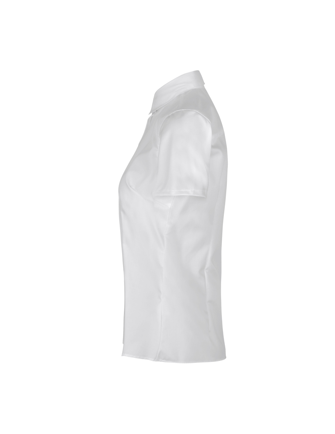 Biznesowa koszula z tkaniny fine twill z wykonczeniem non iron. Klasyczny damski model o modnym i wygodnym kroju. Krótkie rekawy. Lekko dopasowana.