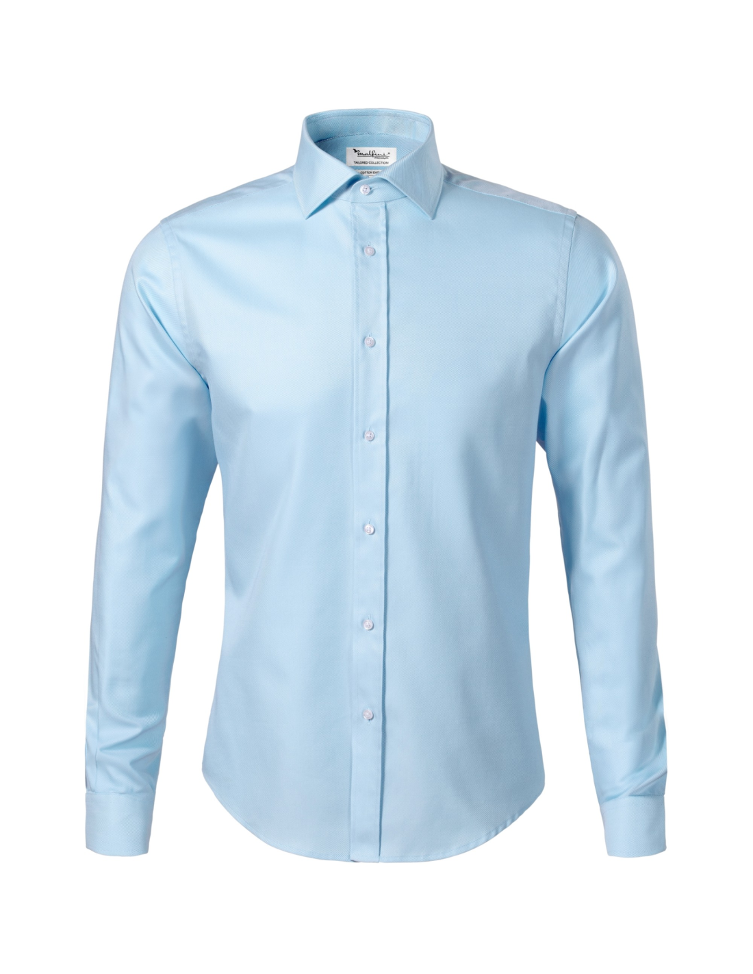 zaprojektowany przez czołowego czeskiego krawca Romana Humlíčka, przędza z bardzo długich włókien, dopasowany krój z bocznymi szwami, podwójny karczek i zaszewki z tyłu, kołnierzyk koszulowy, wzmocnione wykończenie kołnierzyka, części przednie wykończone plisą, długie rękawy z półokrągłym mankietem na 2 guziki, perłowe guziki w kolorze 00 (2 zapasowe guziki), zaokrąglona dolna krawędź