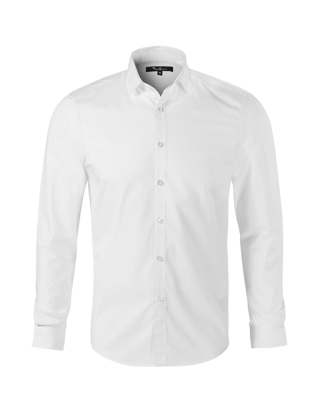 dopasowany krój z bocznymi szwami, podwójny karczek i zaszewki z tyłu, kołnierzyk koszulowy, wzmocnione wykończenie kołnierzyka, części przednie wykończone plisą, długie rękawy ze ściętymi mankietami i 2 guzikami, perłowe guziki w kolorze materiału (1 zapasowy), zaokrąglony dół