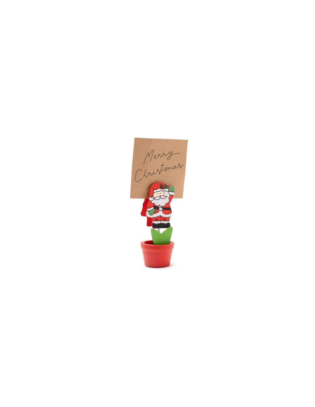 Świąteczny przybornik z klipsem na banknoty, wykonany z drewna. Idealny do dodania świątecznego i funkcjonalnego akcentu na biurku podczas obchodów Bożego Narodzenia.