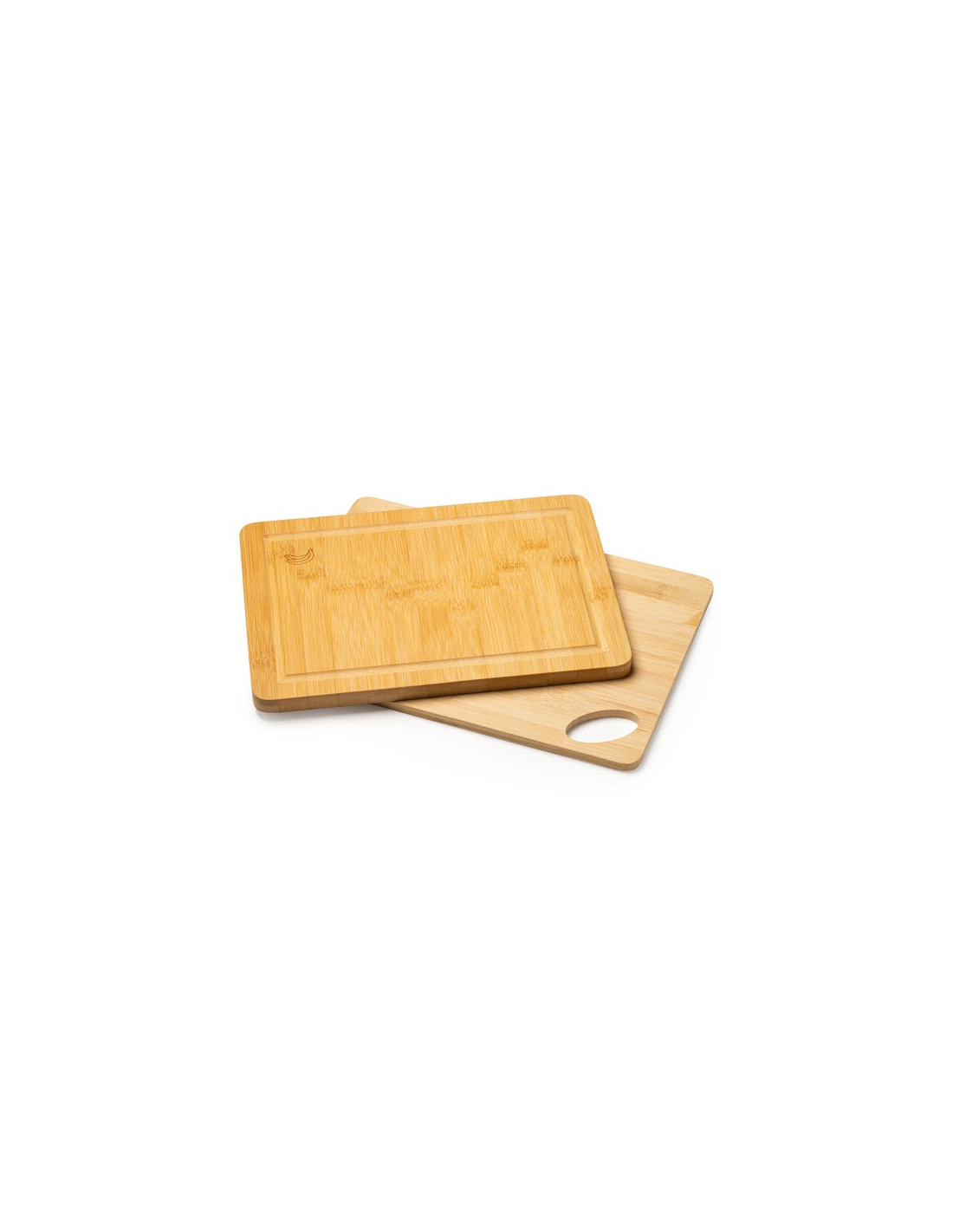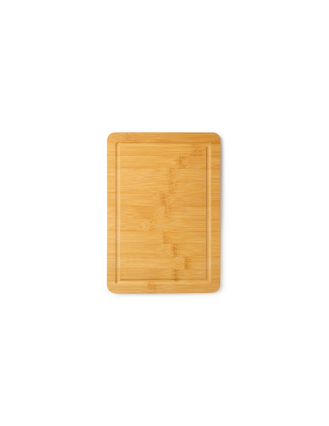 Rectangular bamboo chopping board with juice rim.