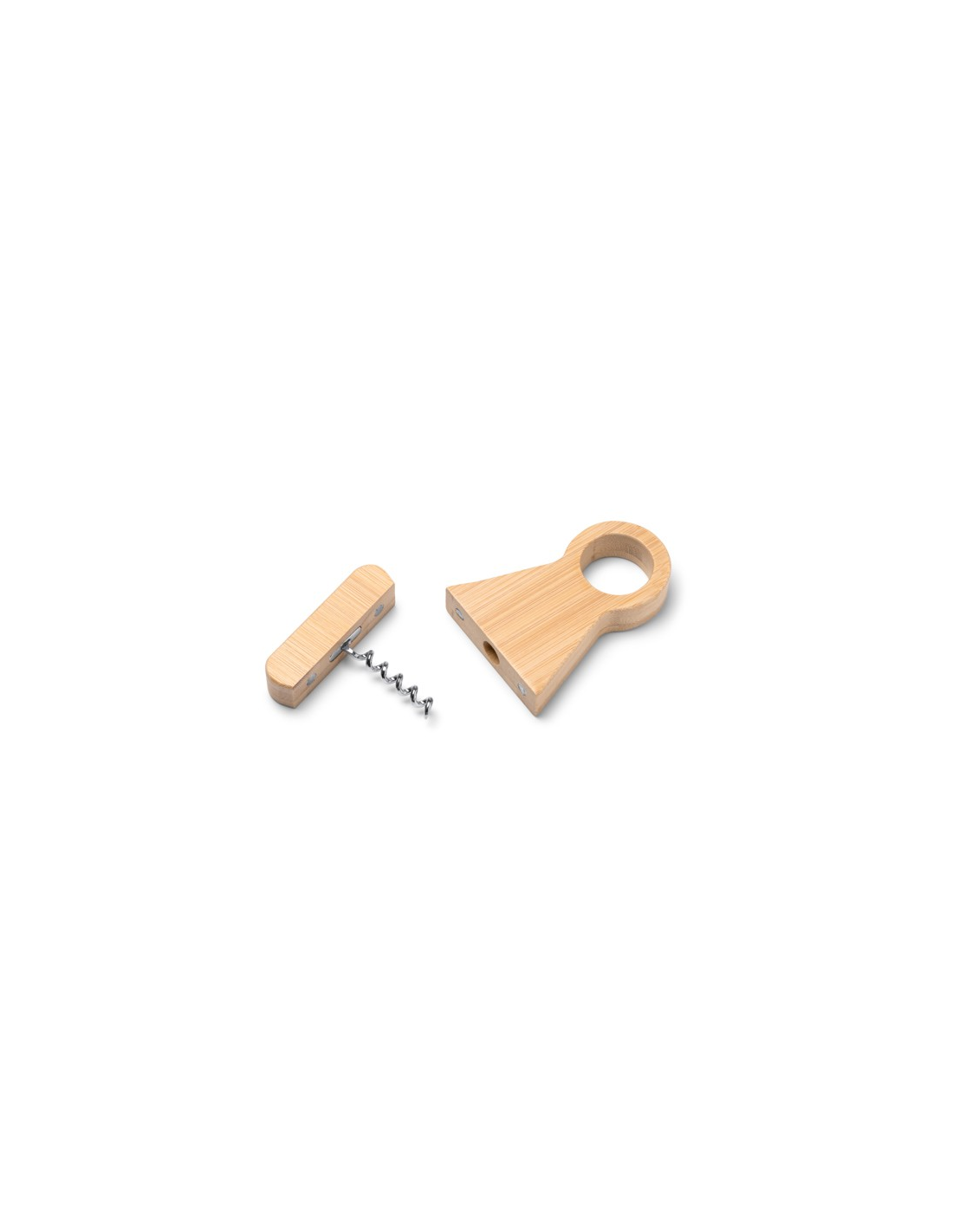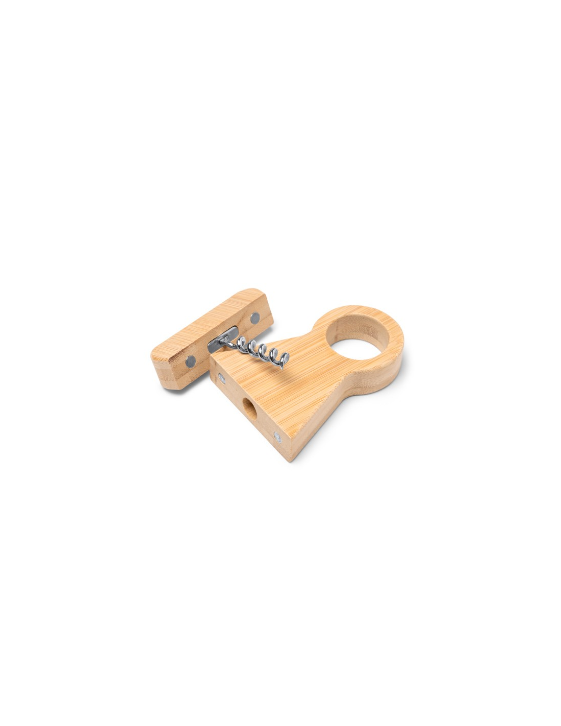 Korkociąg wykonany z bambusa z eleganckim uchwytem na butelkę, łączący funkcjonalność i naturalną estetykę. Idealny do stylowego otwierania butelek i utrzymania porządku na stole.