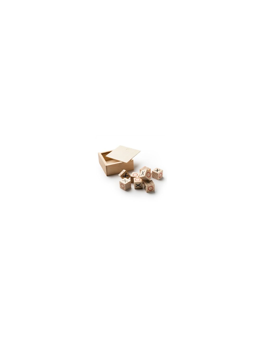Gra planszowa z drewna. 9 klocków prezentowanych w pudełku z przesuwanym wieczkiem.