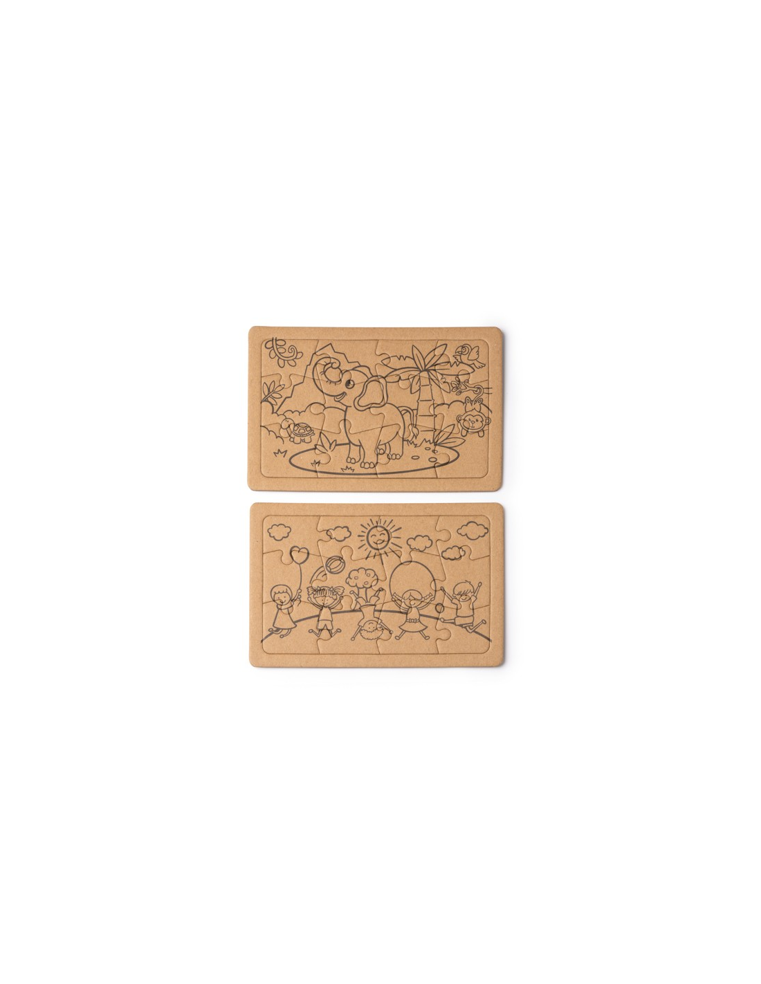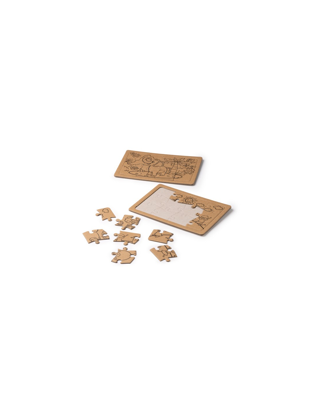 Zestaw puzzli wykonanych z kartonu pochodzącego z recyklingu. Zawiera dwie układanki, każda po 12 elementów. Ten idealny dla dzieci zestaw łączy w sobie rozrywkę i zrównoważony rozwój. Ekologiczny produkt, który promuje kreatywność i szacunek dla środowiska, oferując godziny zabawy i nauki w kompaktowym i atrakcyjnym formacie.