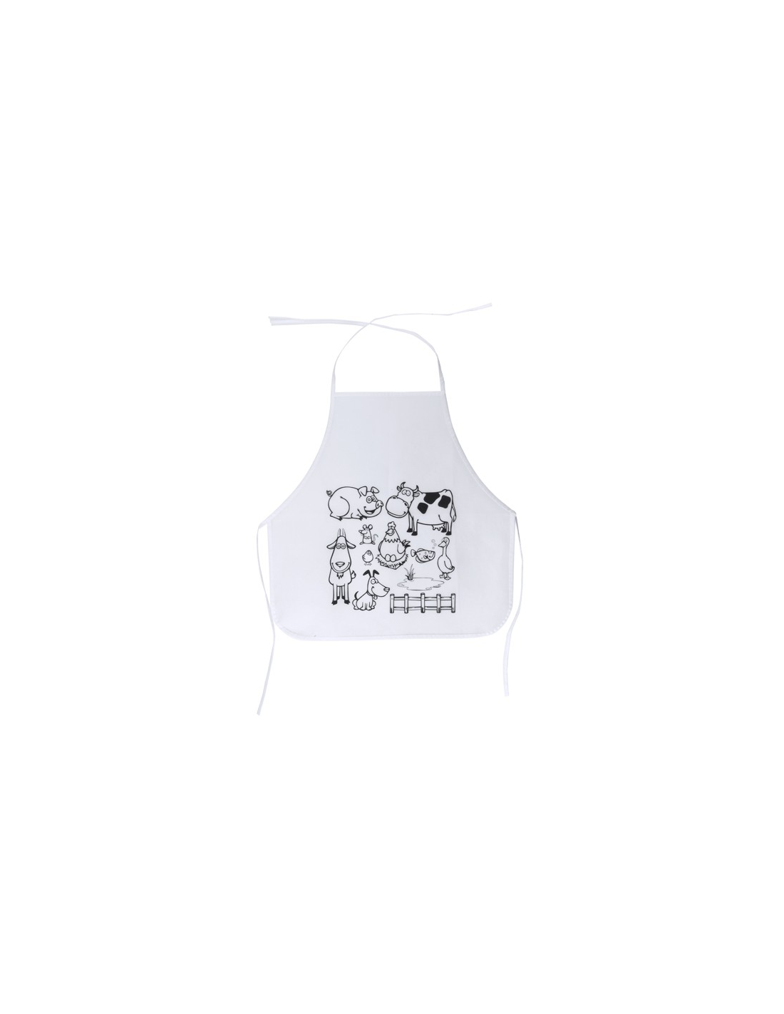 Fartuch dla dzieci z materiału non-woven ze wzorem przygotowanym do kolorowania. Zawiera 5 kredek świecowych w różnych kolorach. Rozmiar uniwersalny, regulowany.