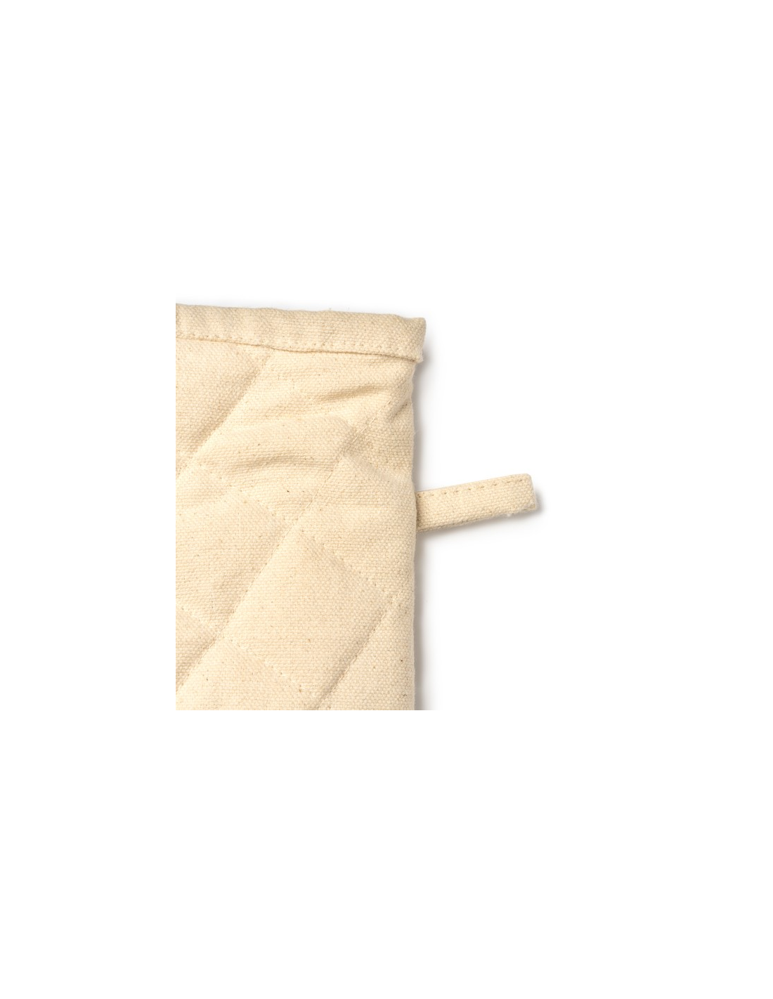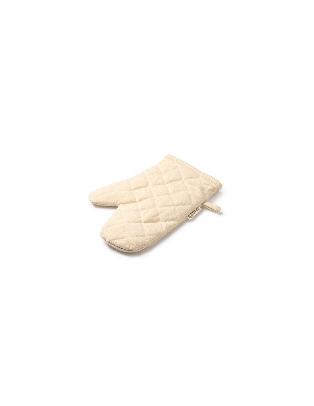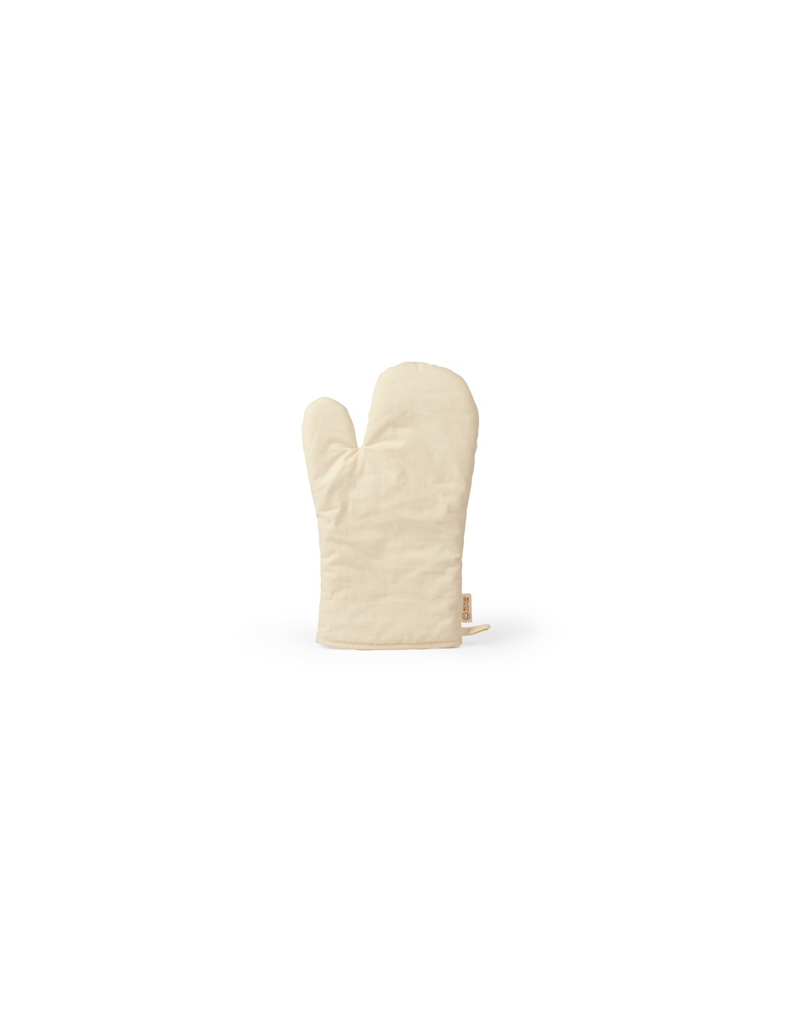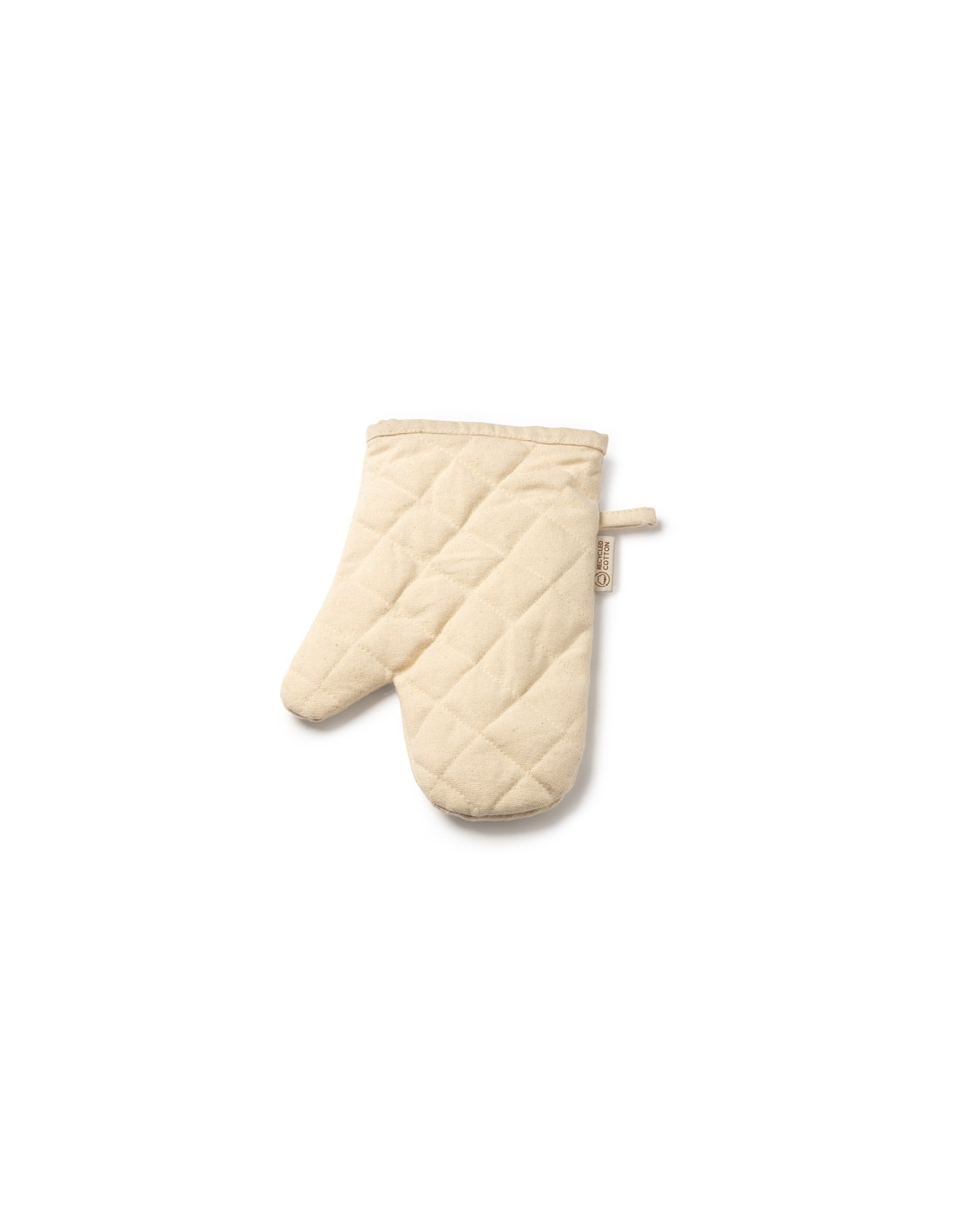 Rękawica kuchenna wykonana w 100% z bawełny pochodzącej z recyklingu, płaska z jednej strony, dzięki czemu jest idealna do znakowania, z paskiem służącym do wieszania.