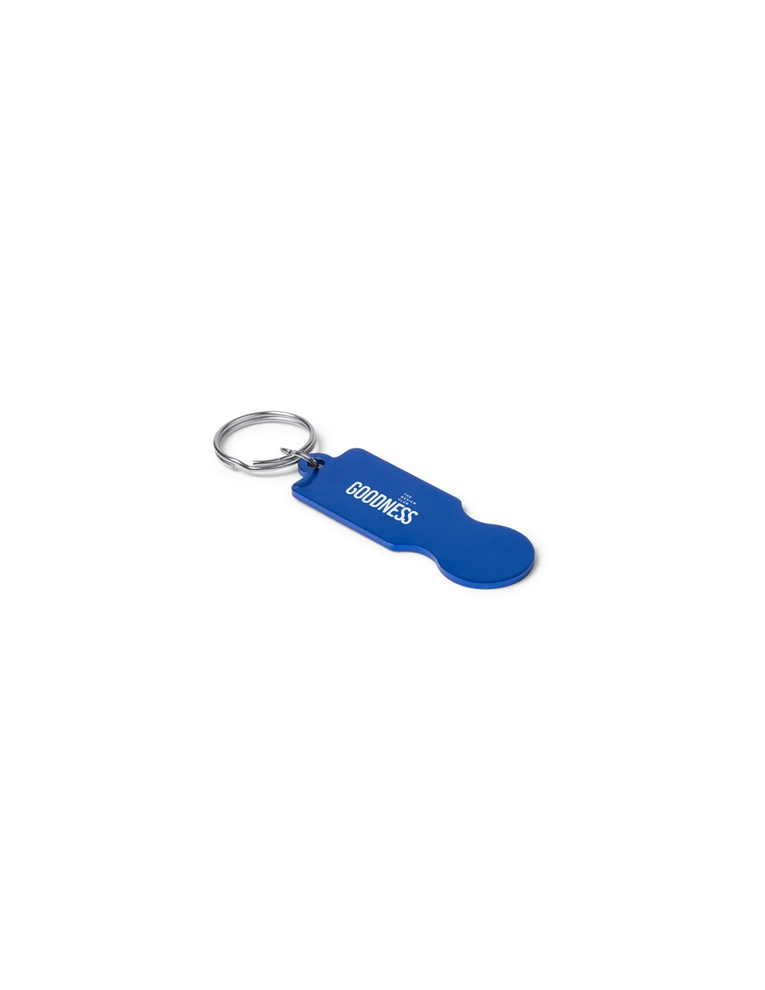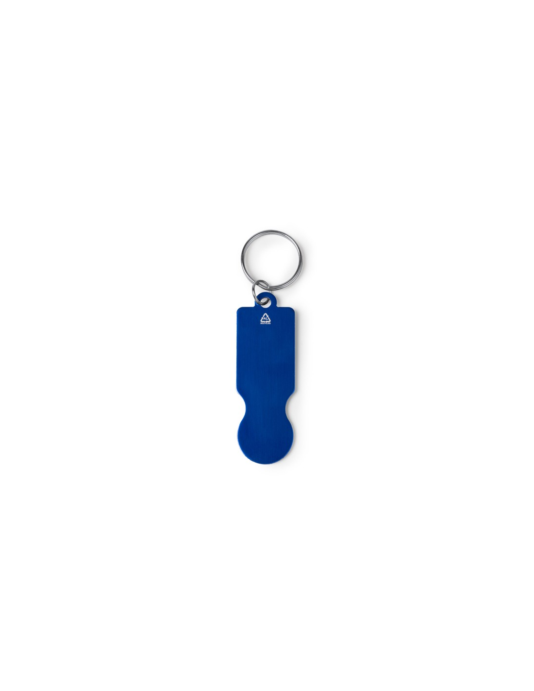 Aluminiowy brelok z recyklingu z monetą do wózka sklepowego. Duży obszar znakowania.
