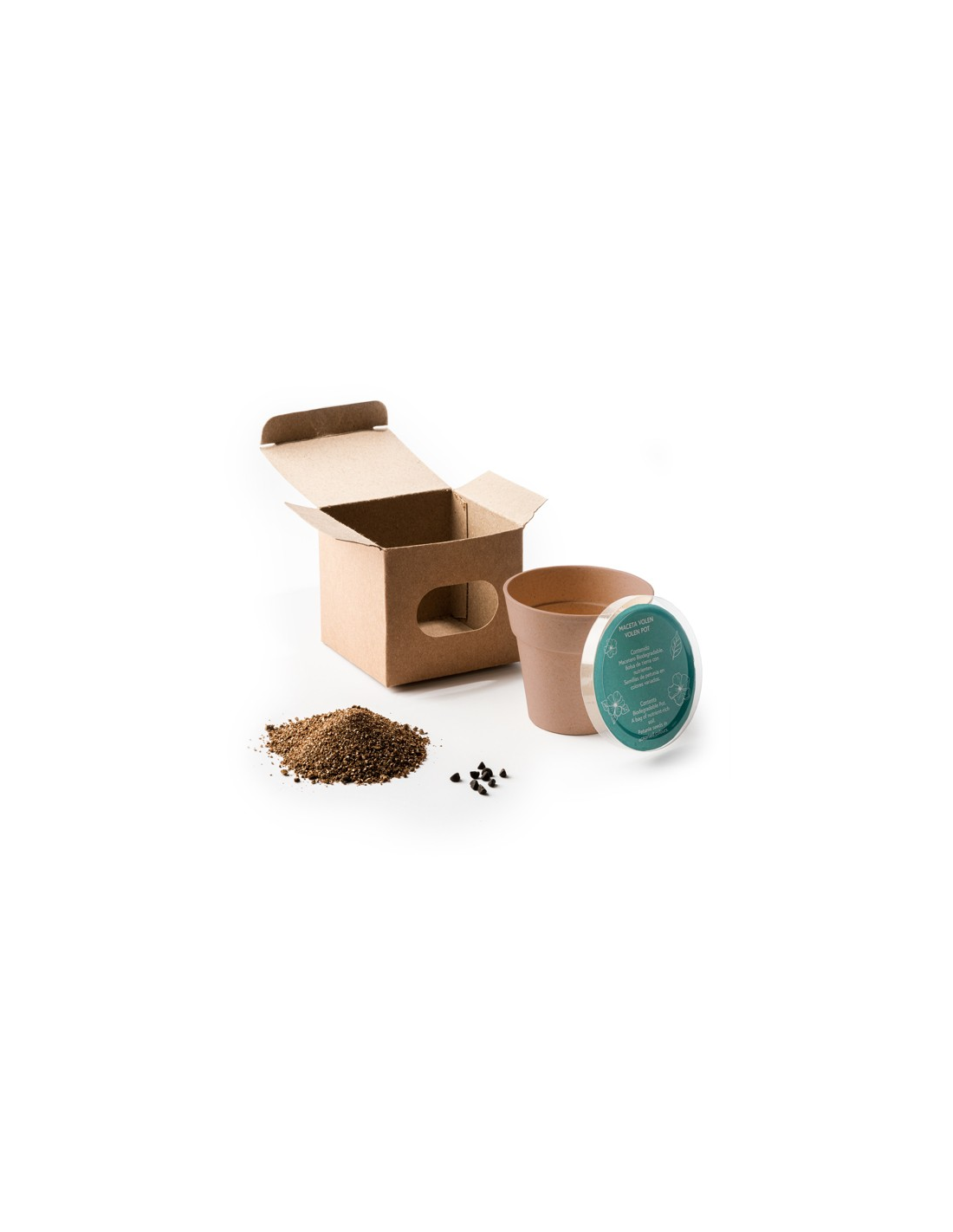 Doniczka z nasionami petunii i biodegradowalną doniczką. Obejmuje podłoże.