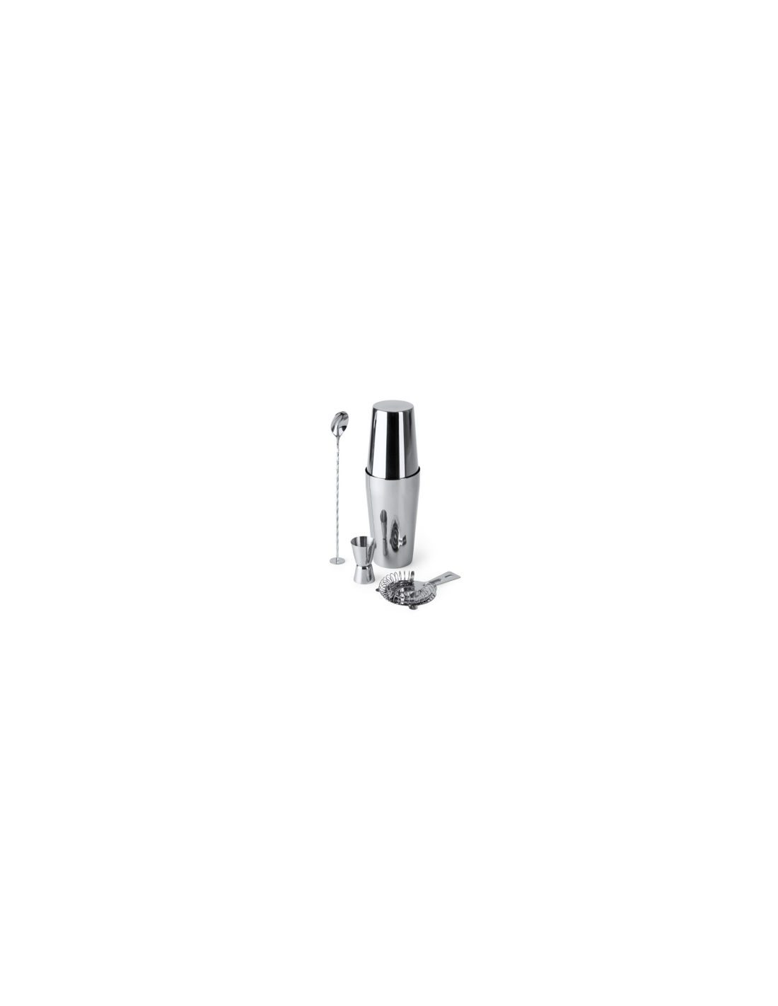 Zestaw koktajlowy wykonany ze stali nierdzewnej 304. Akcesoria w zestawie: miarka do alkoholu, shaker o pojemności 580 ml, sitko i łyżka. Torba do przenoszenia w zestawie.