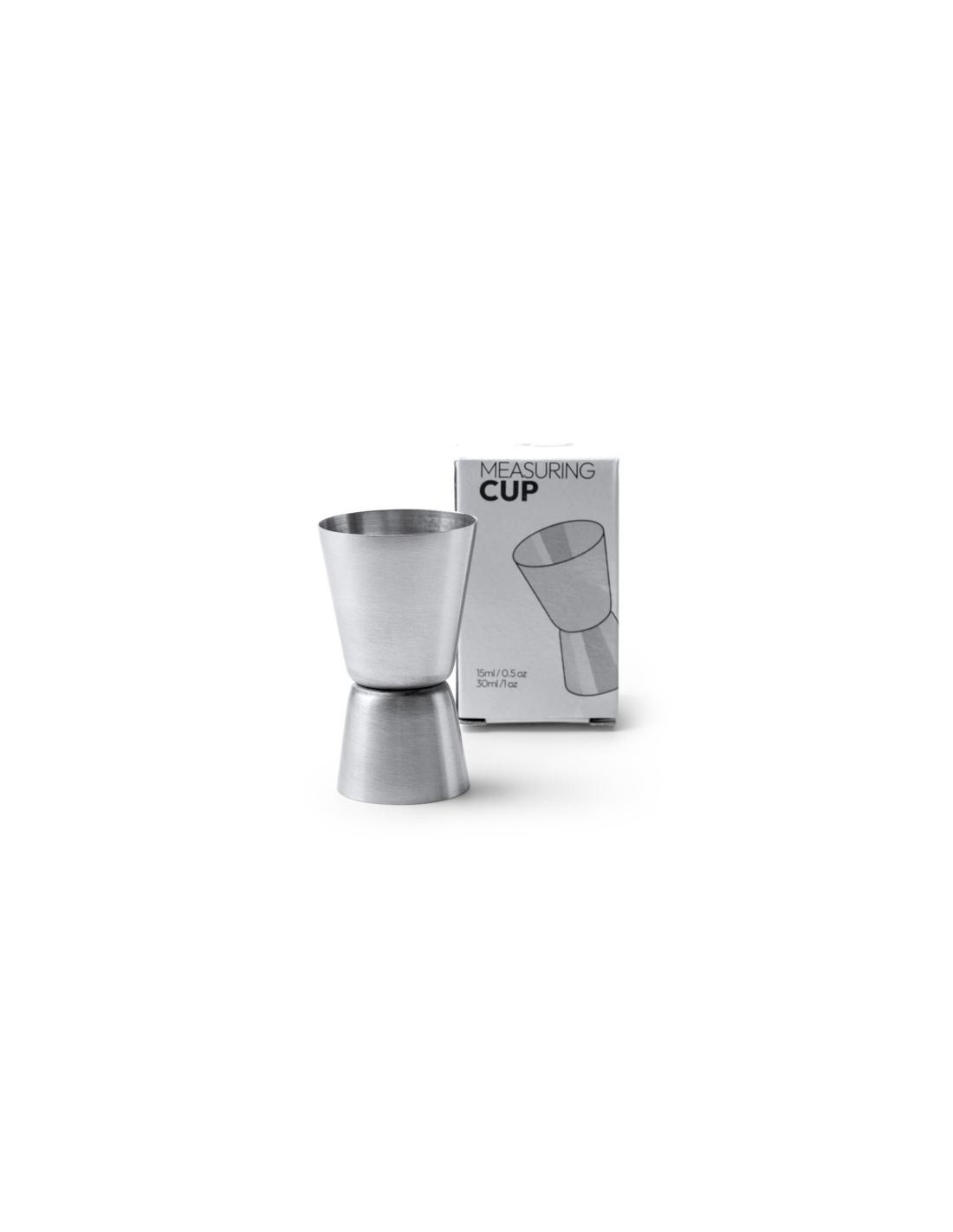 Miarka do napojów wykonana ze stali nierdzewnej. Mierzy pojemność 15 i 30 ml.