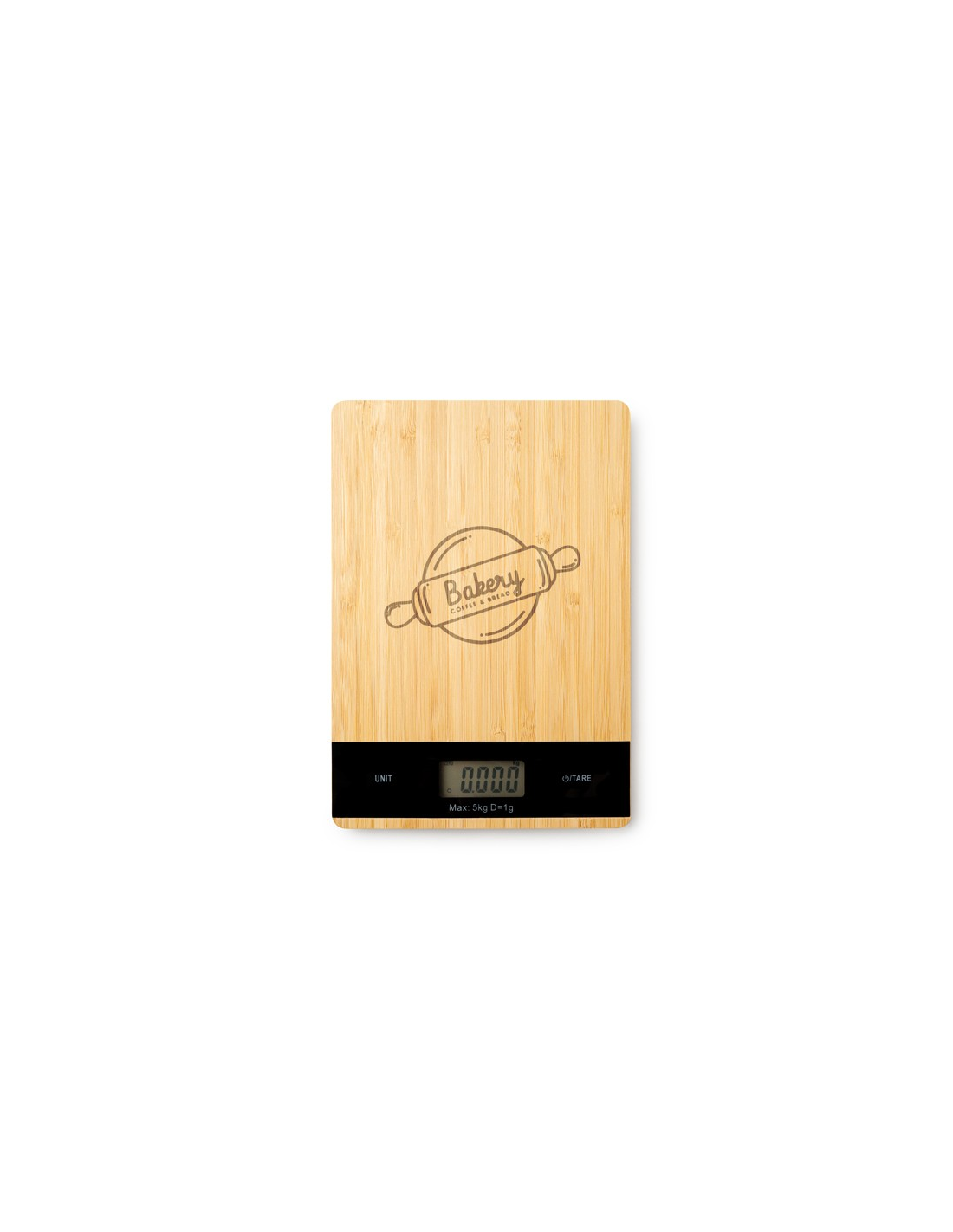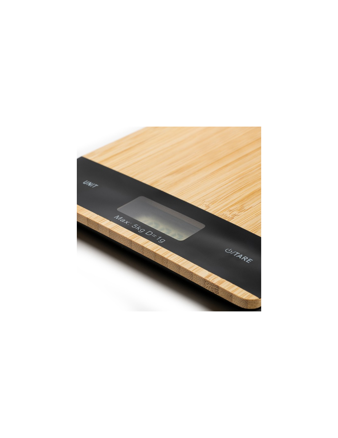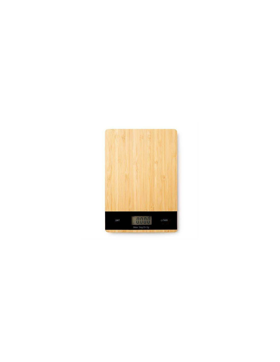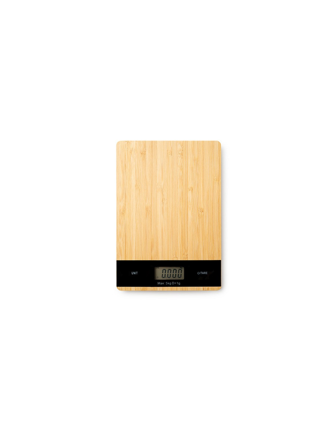 Digital kitchen scale with bamboo front shell. Ideal for weighing ingredients and food when cooking your favourtie recipes. With a maximum capacity of 5 kg. Powered by a battery included.