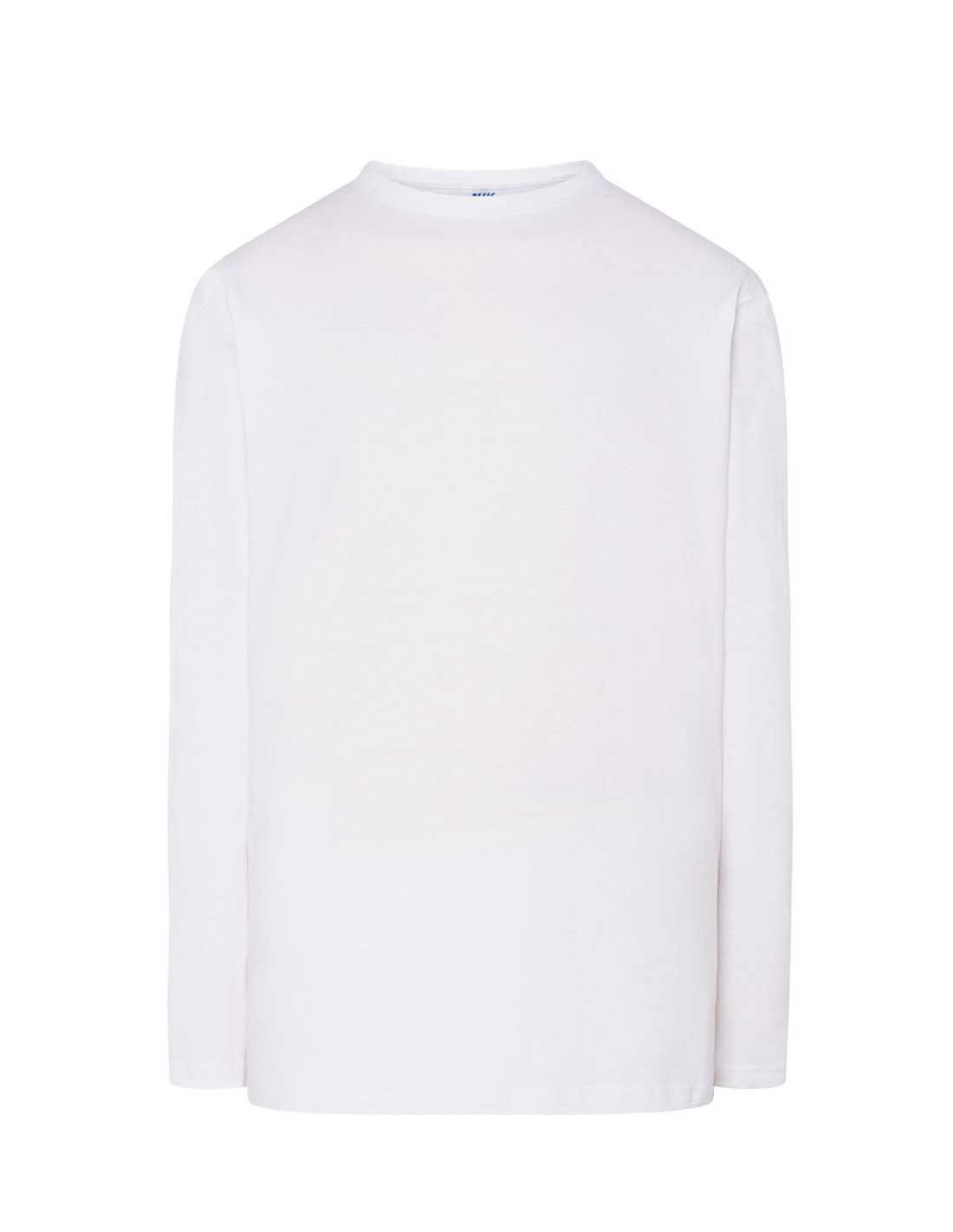 T-Shirt JHK męski z długim rękawem. Brak bocznych szwów. Podwójne szwy na ramionach i spodzie koszulki. Wzmocniony lycrą ściągacz. Taśma wzmacniająca. 100% bawełna stabilizowana.