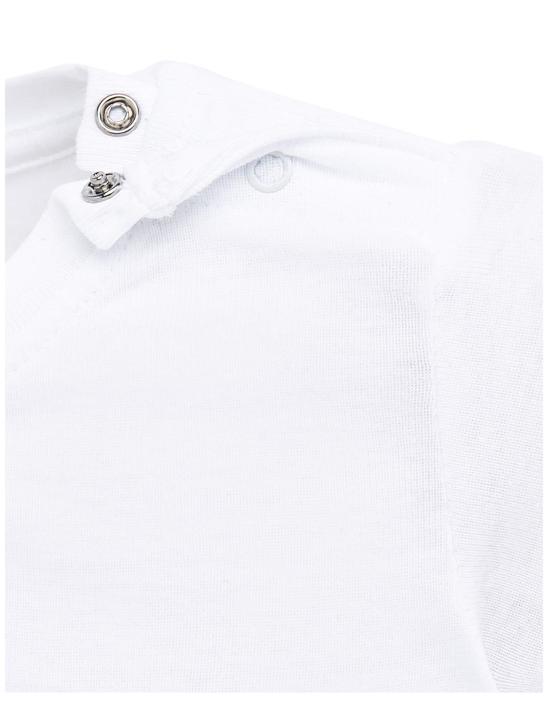 Body dziecięce z krótkim rękawem. Wykończenie pod szyją - lycrą. Zapinane na ramieniu i w kroku. Ściągacz 1x1. 100% bawełna.