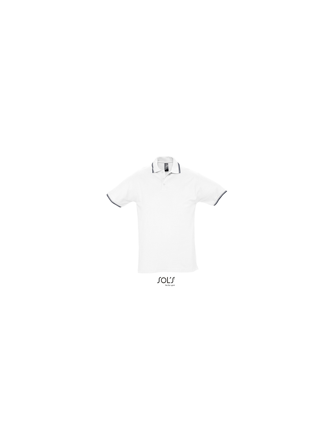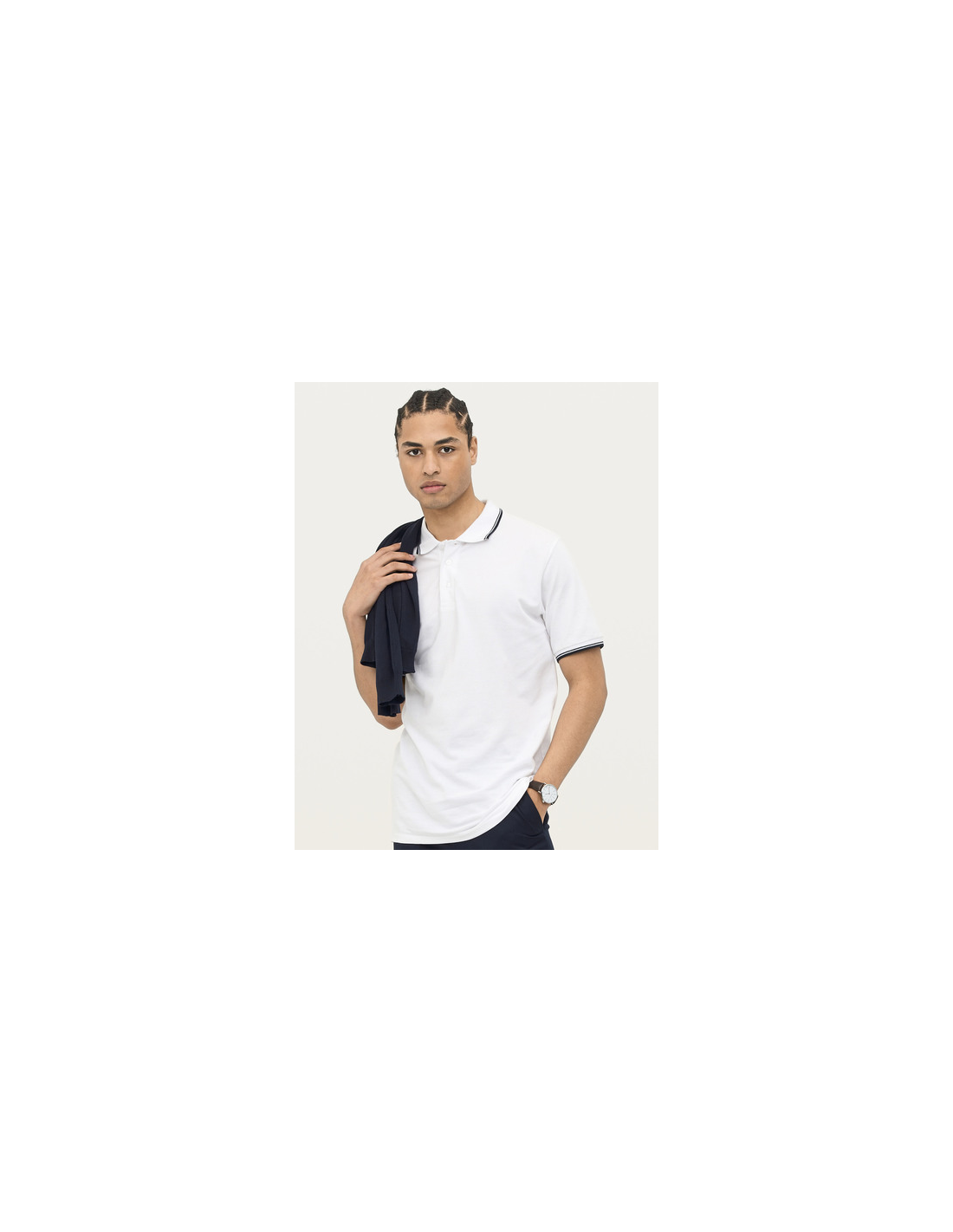 • Kontrastujące paski na kołnierzyku i mankietach, na kołnierzu i mankietach (dzianina płaska)