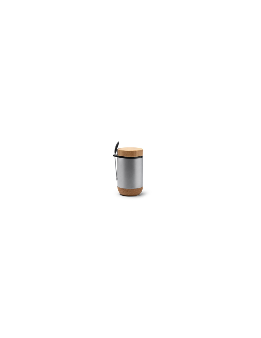 Wielofunkcyjny termos wykonany ze stali nierdzewnej 304, idealny do przechowywania żywności. Bambusowa pokrywka i korkowe dno. Łyżka w zestawie. Pojemność: 400 ml. Zapakowany w pudełku zaprojektowanym z myślą o środowisku.
