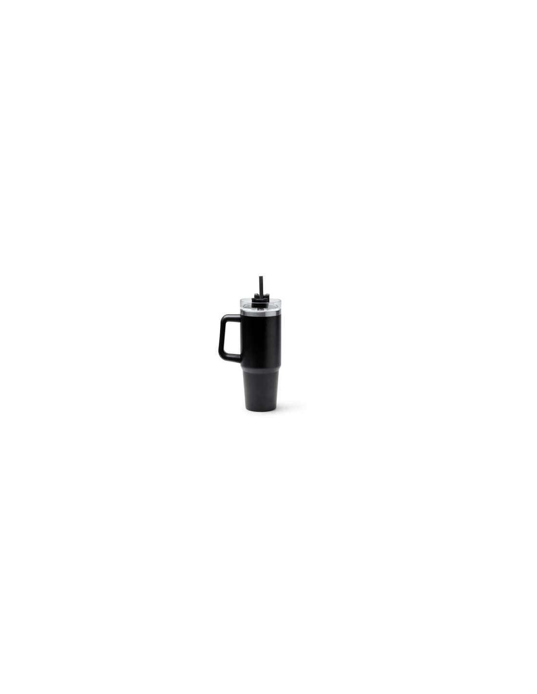Kubek termiczny z podwójnymi ściankami wykonany ze stali nierdzewnej 304 pochodzącej z recyklingu. Pokrywka ze słomką i systemem zamykania na śrubę. Pojemność: 870 ml. Zapakowany w eleganckim pudełku.