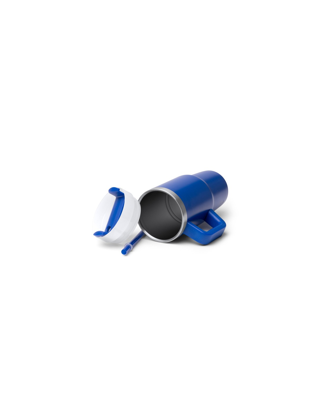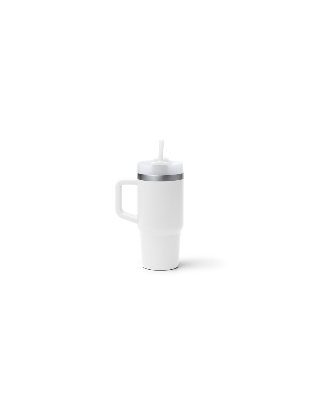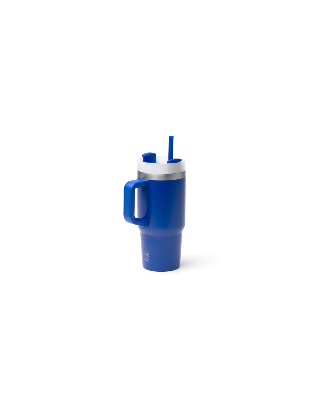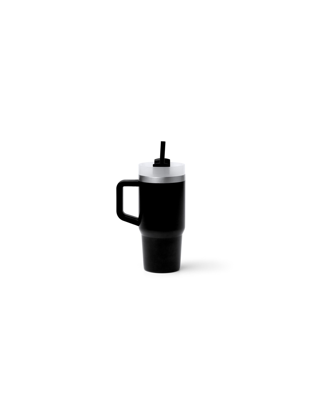 Kubek termiczny ze stali nierdzewnej 304 pochodzącej z recyklingu z uchwytem. Pojemność: 400 ml. Pasująca słomka i pokrywka w zestawie.