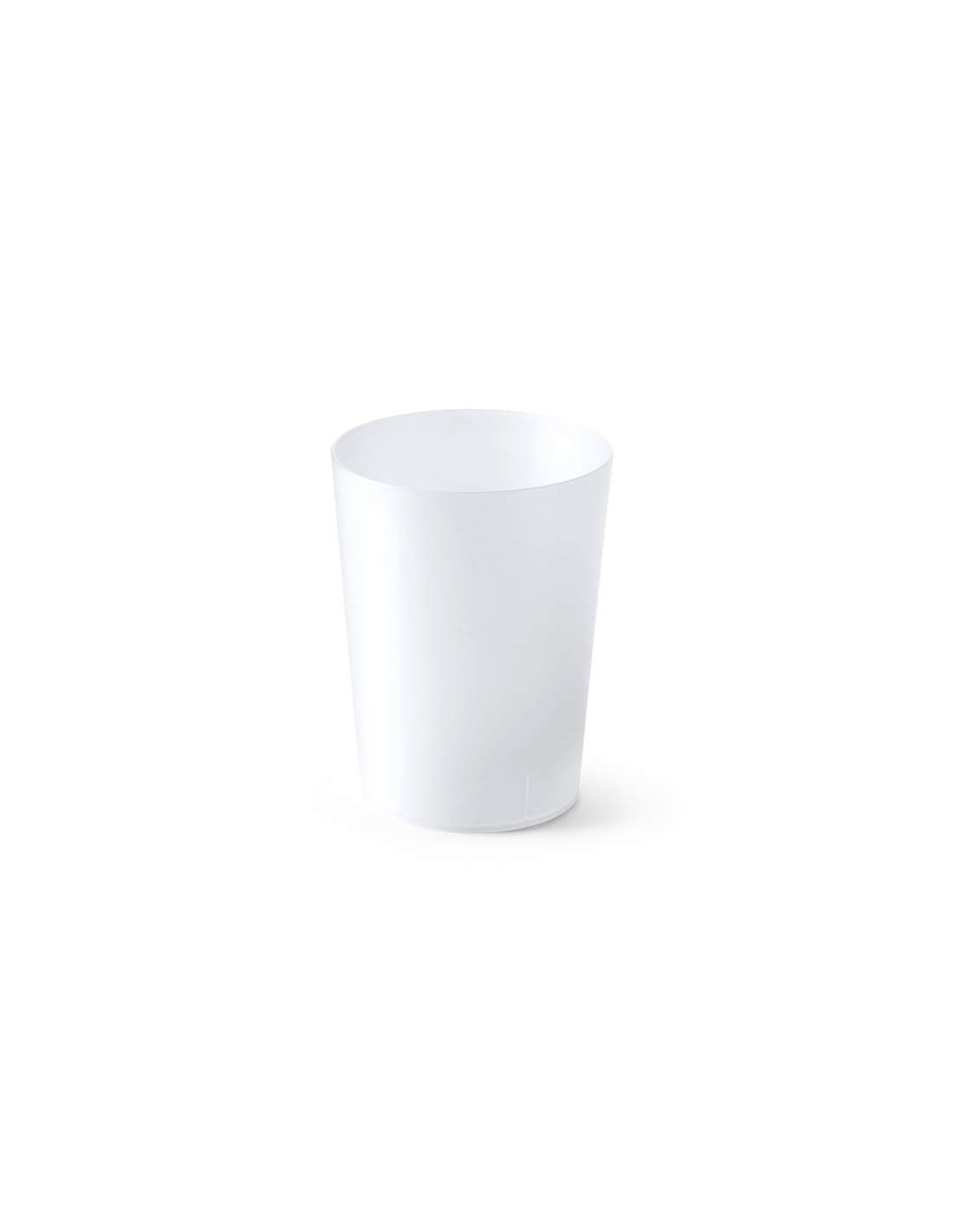 Elastyczny kubek wykonany z polipropylenu o pojemności 900 ml do wielokrotnego użytku. Półprzezroczyste wykończenie.
