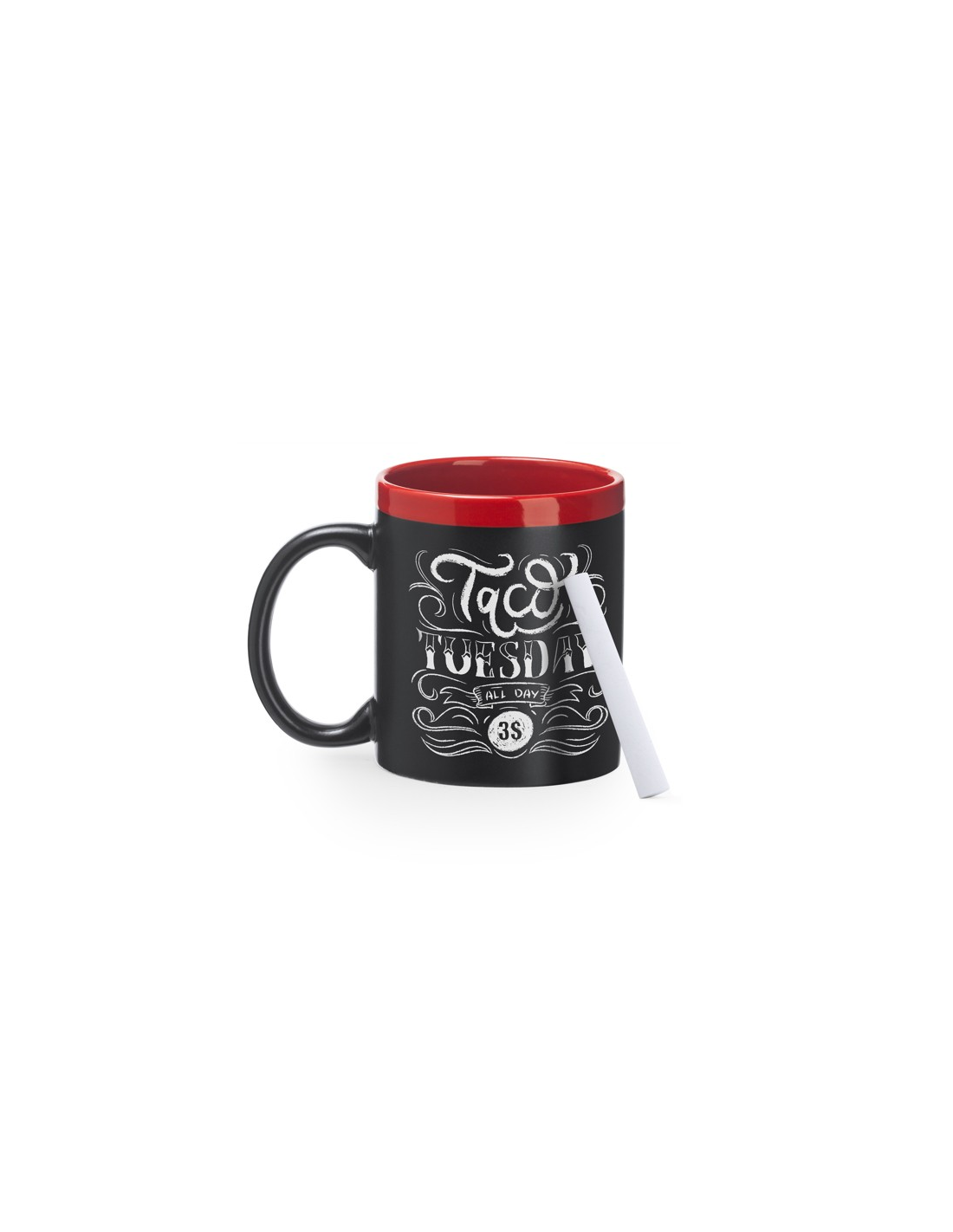 Fantastyczny kubek, na którym można pisać, o pojemności 350 ml. Kreda w zestawie, dzięki czemu można tworzyć własne wzory.