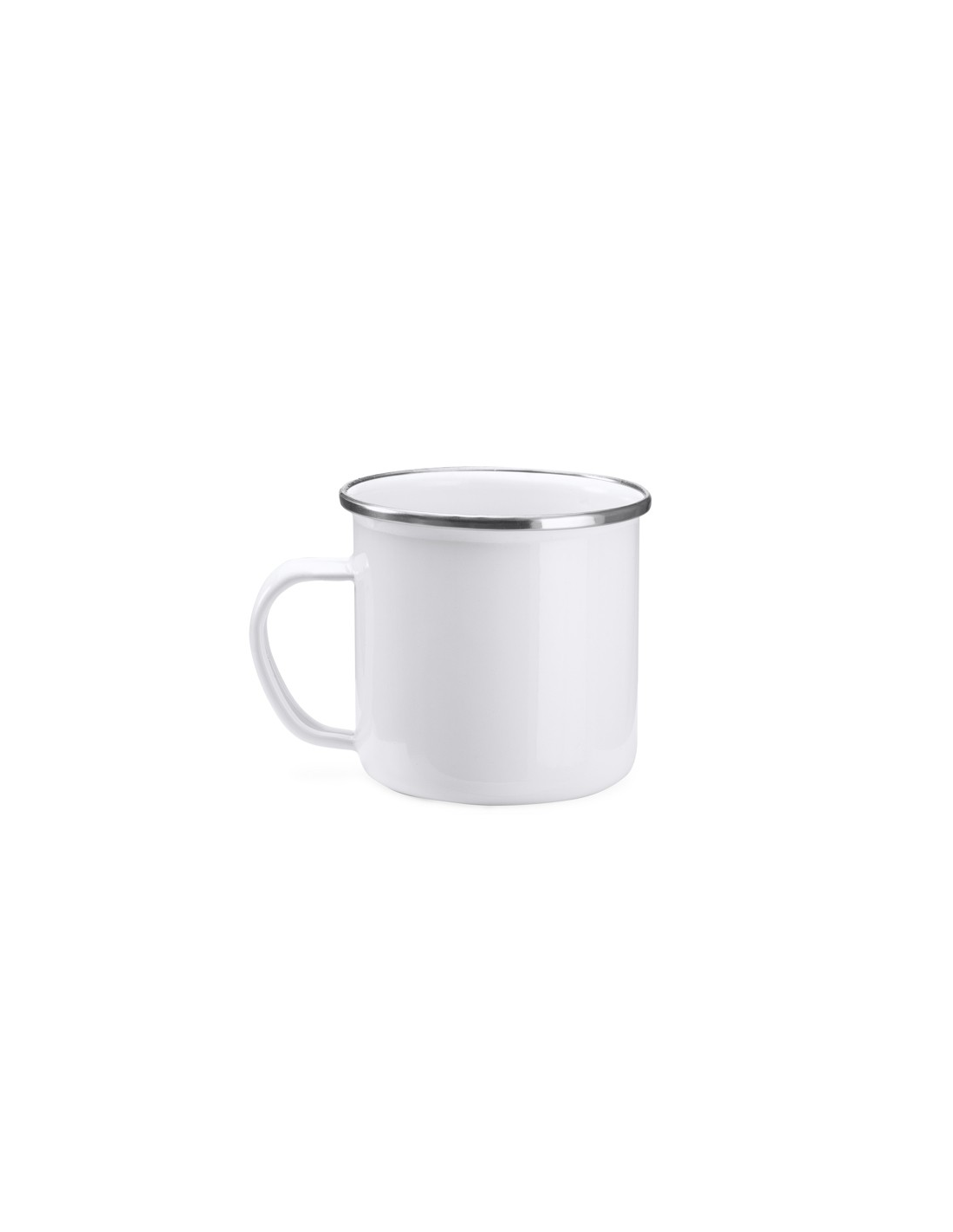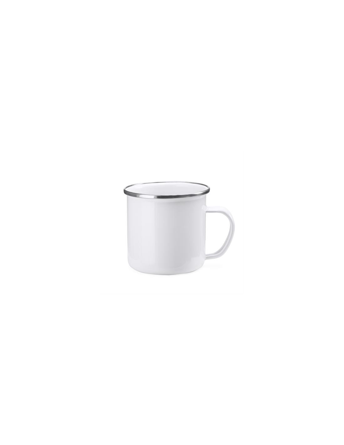 Fantastyczny szkliwiony metalowy kubek w stylu retro ze srebrną krawędzią, o pojemności 370 ml i specjalną powłoką przeznaczoną do sublimacji.