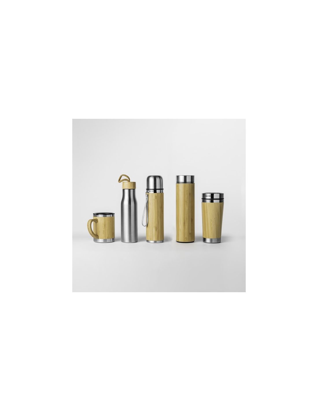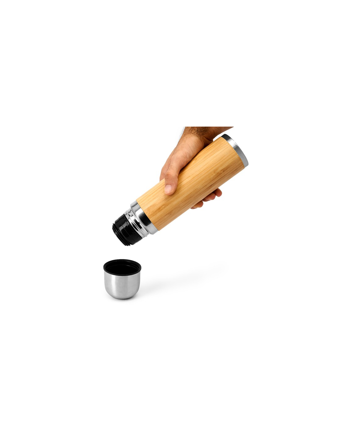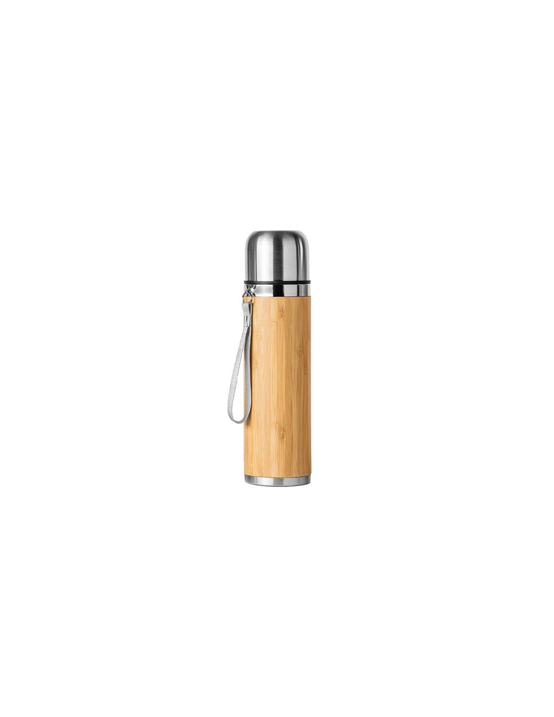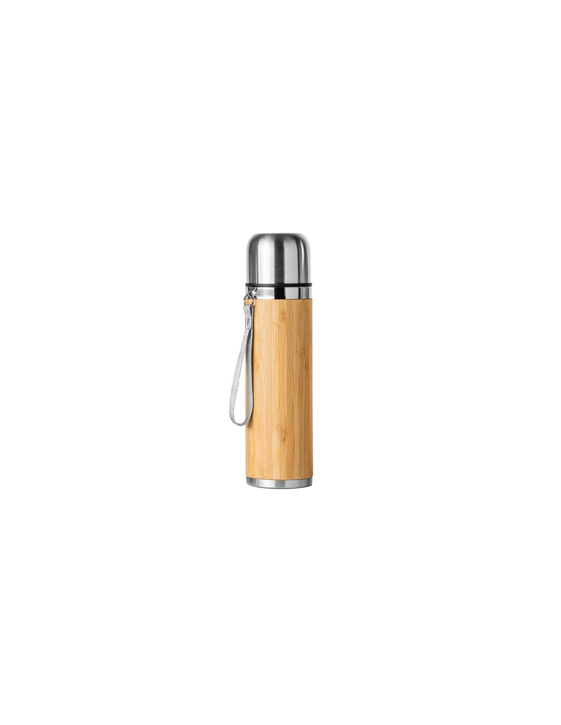 Termos ze stali nierdzewnej 304 z podwójnymi ściankami i detalami z bambusa. Pojemność: 420 ml. Pasek do przenoszenia w zestawie. Elegancki i odlewany termos.