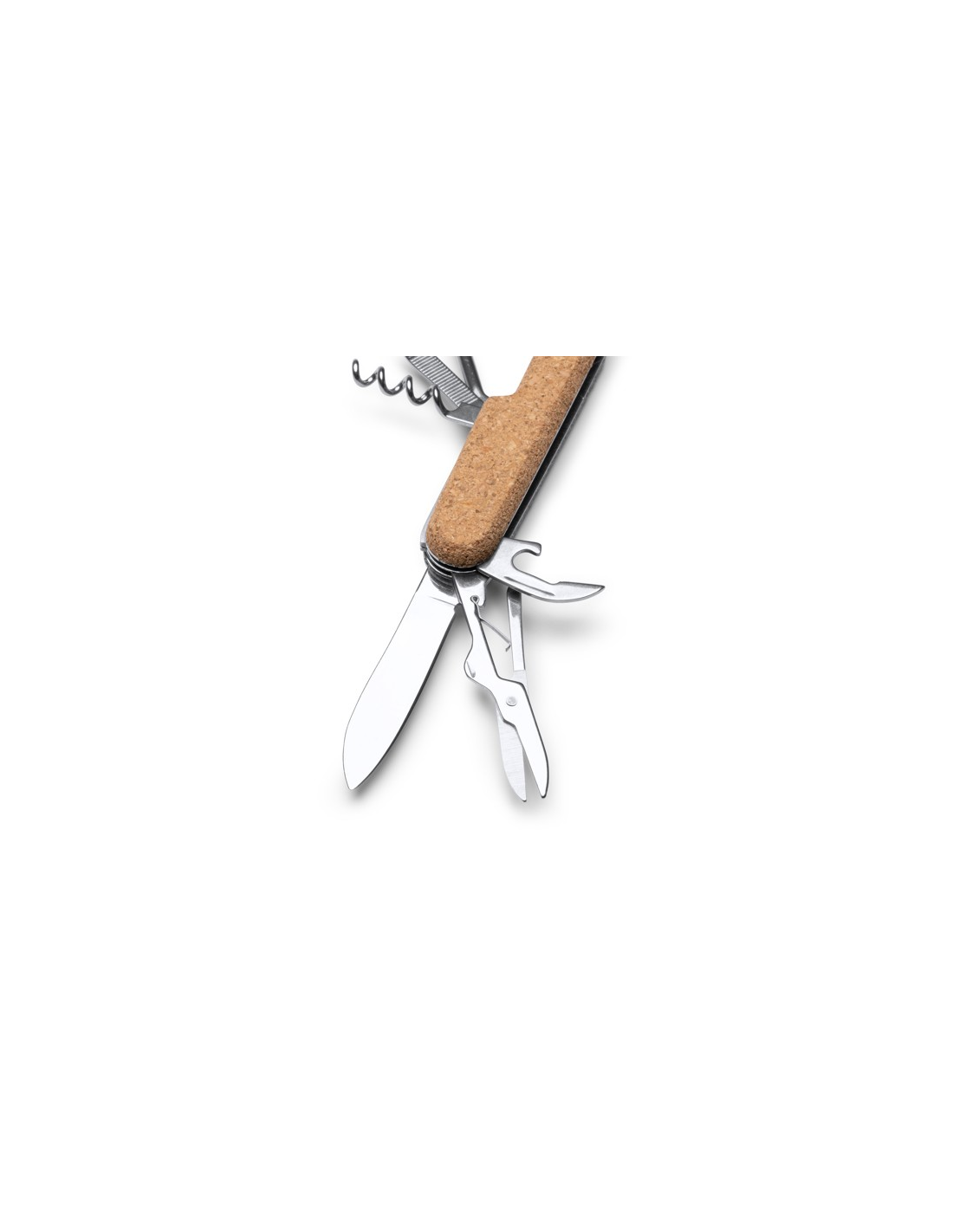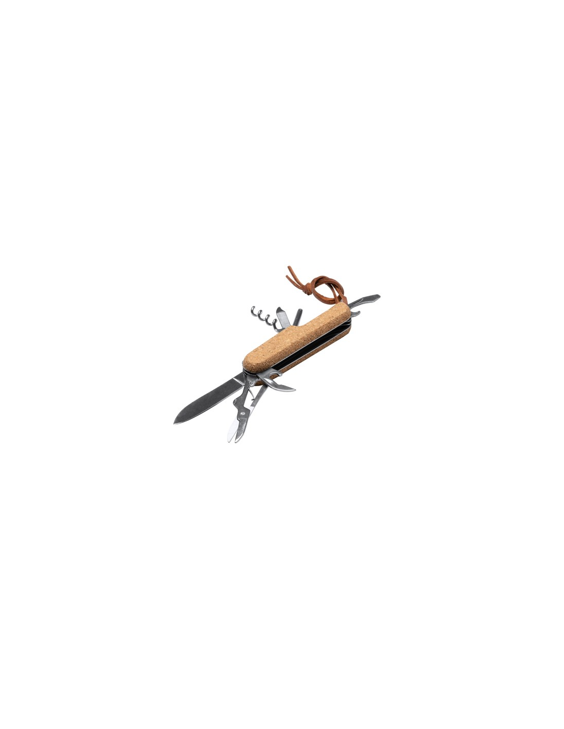 Wspomniane narzędzie wielofunkcyjne ma w zestawie ostry nóż ze stali nierdzewnej służący do precyzyjnego cięcia, nożyczki do precyzyjnych zadań, śrubokręt do dokręcania lub odkręcania śrub, otwieracz do puszek służący do otwierania puszek i korkociąg do delektowania się ulubionymi napojami. Oferuje ono także inne dodatkowe funkcje. Wspomniane narzędzie wielofunkcyjne posiada również pasek do przenoszenia wykonany ze sztucznej skóry, dzięki czemu można je wygodnie nosić ze sobą.