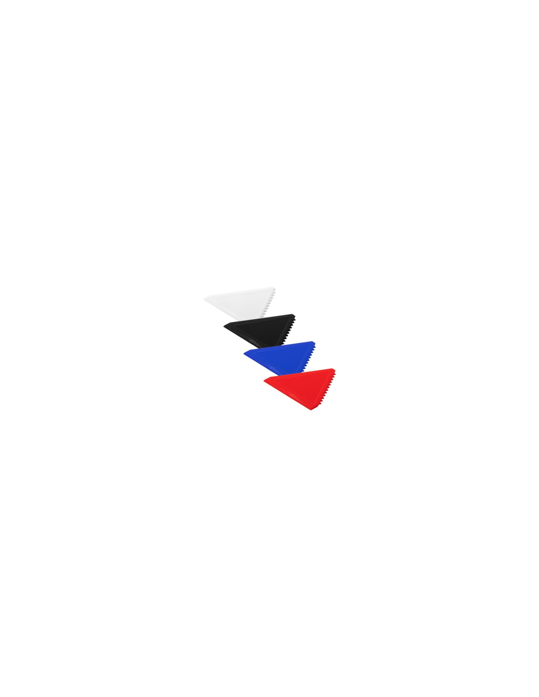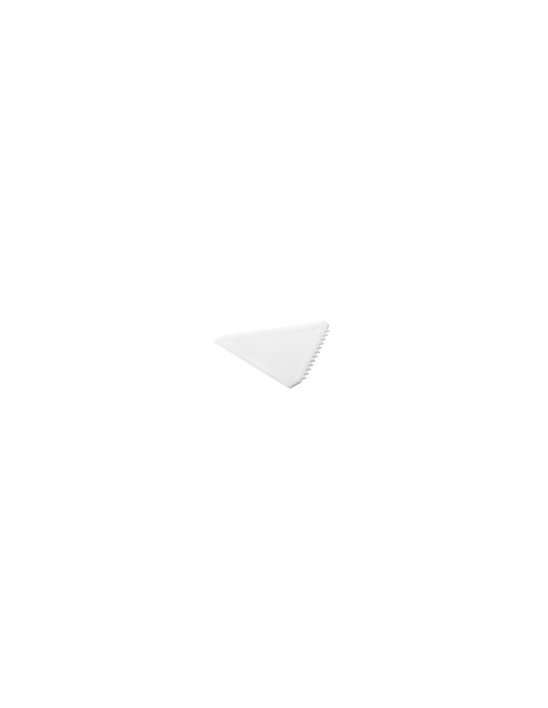 Skrobak do lodu o kompaktowej konstrukcji. Jedna ząbkowana krawędź i dwie płaskie.