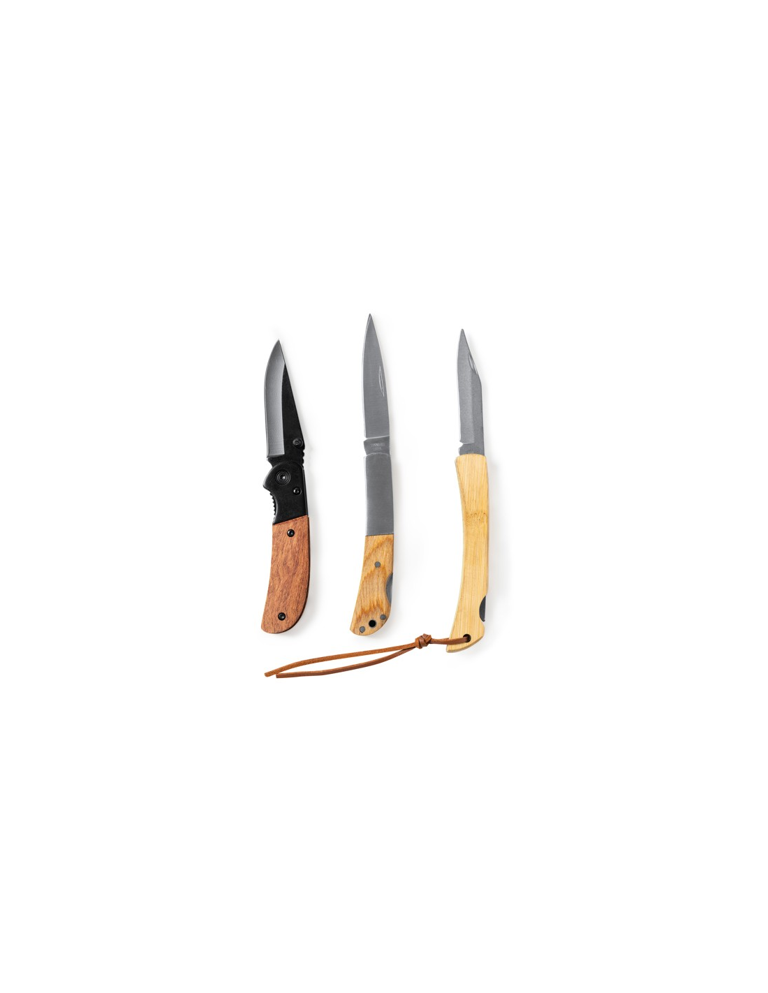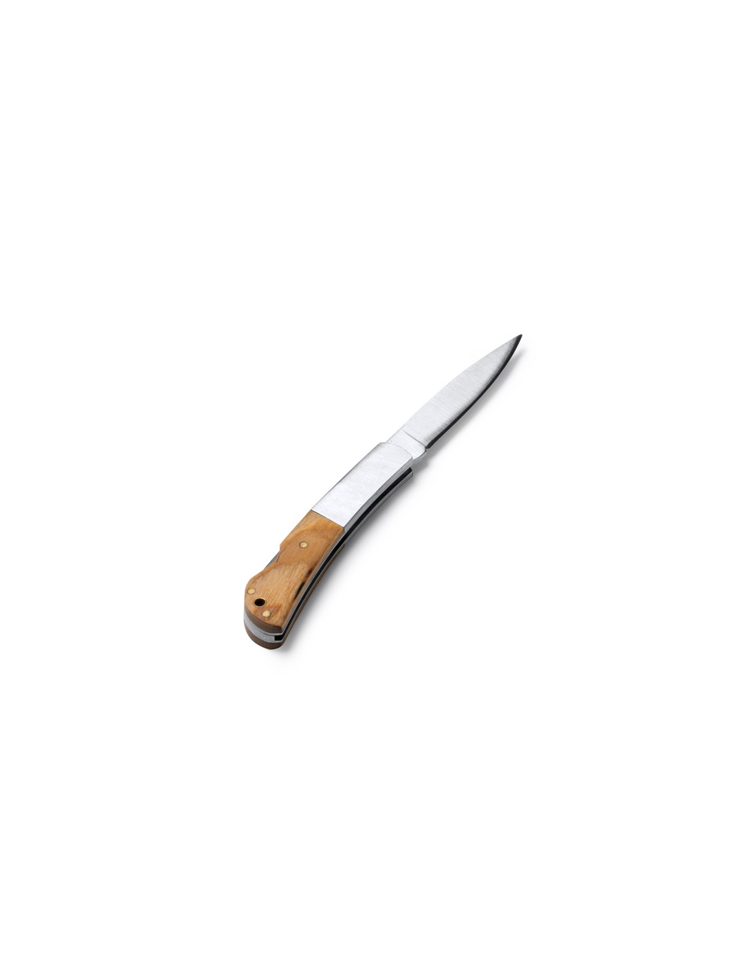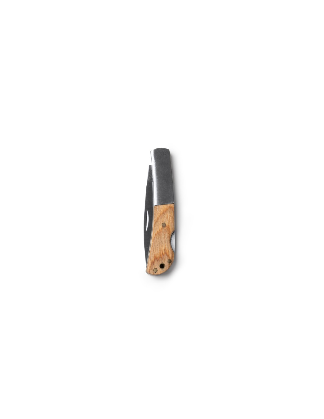 Scyzoryk ze stali nierdzewnej i połączony uchwyt z naturalnym drewnem. Blokada bezpieczeństwa. Zapakowany w pudełku zaprojektowanym z myślą o środowisku.