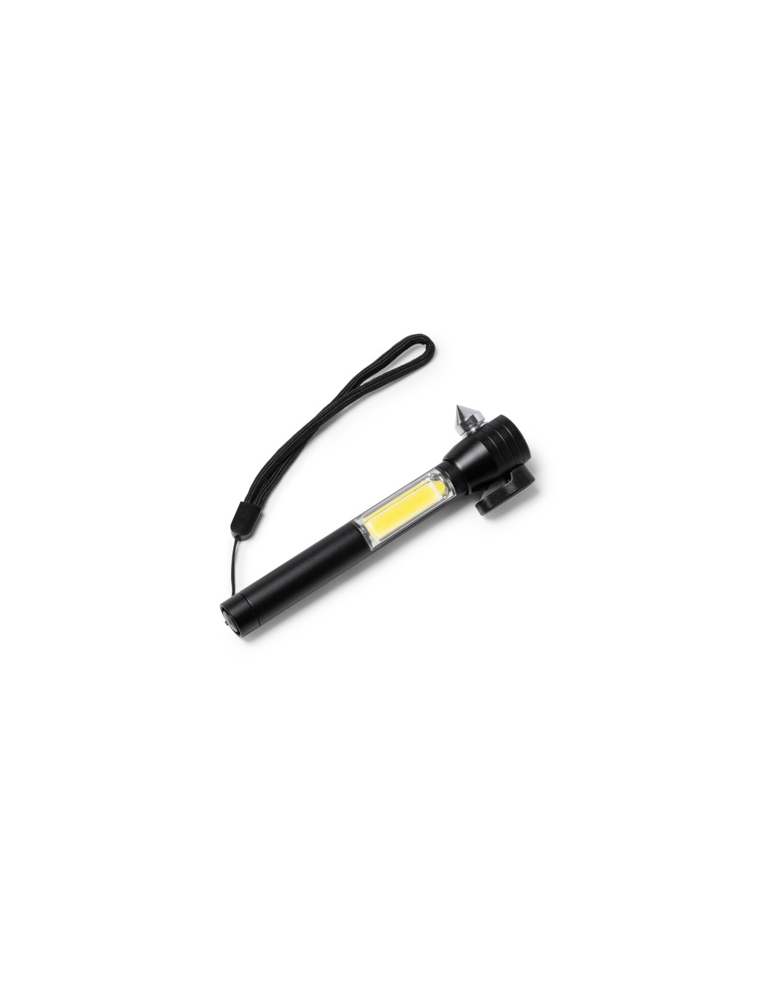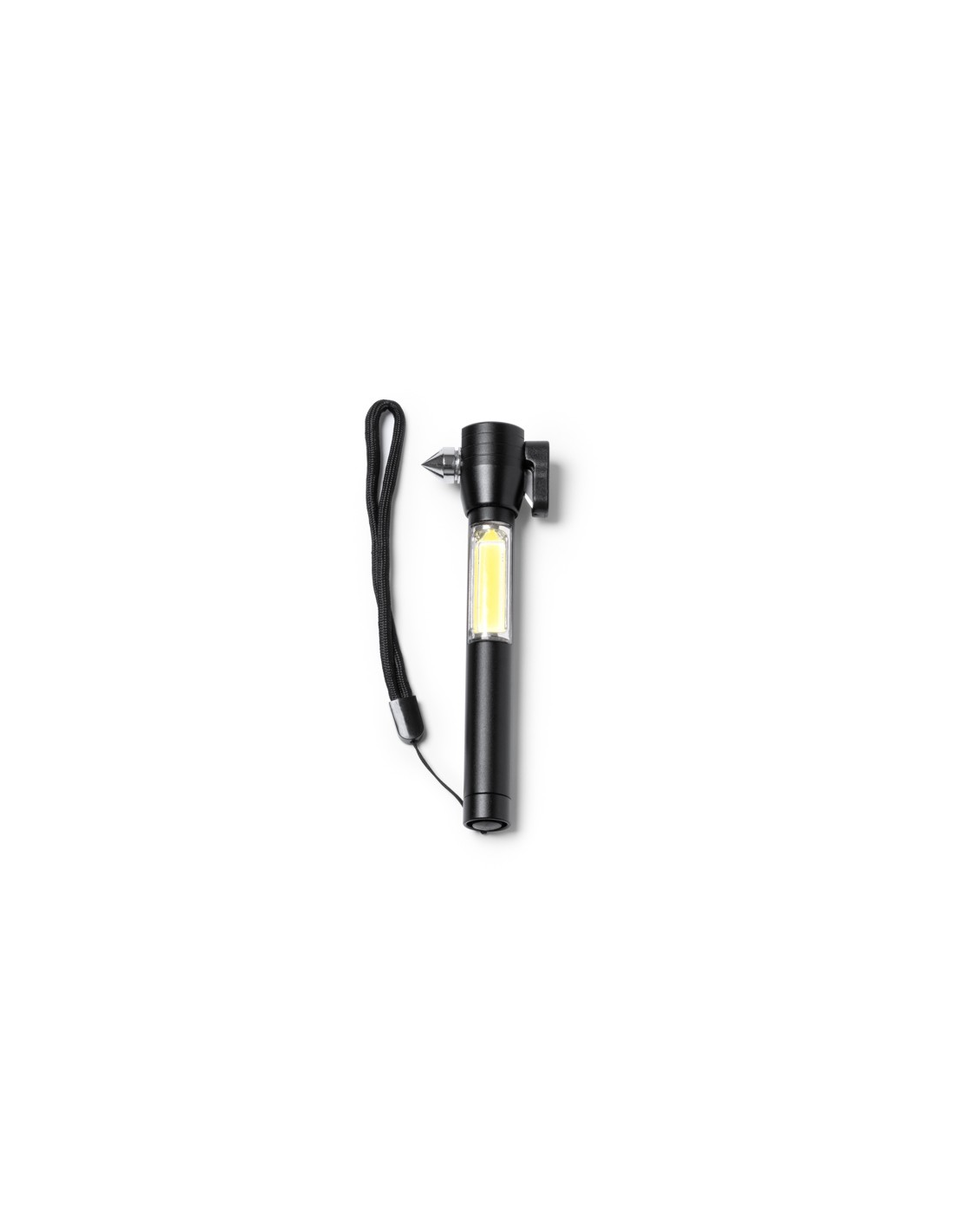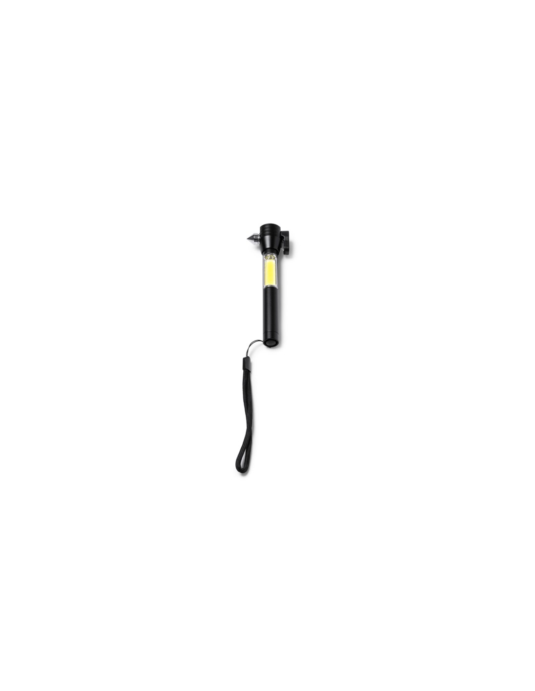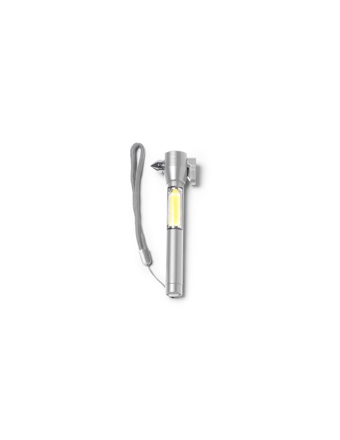 Wielofunkcyjna latarka z funkcją młotka, tłuczenia szkła i przecinania pasów bezpieczeństwa. Bateria AAA w zestawie. Zapakowana w eleganckim pudełku.