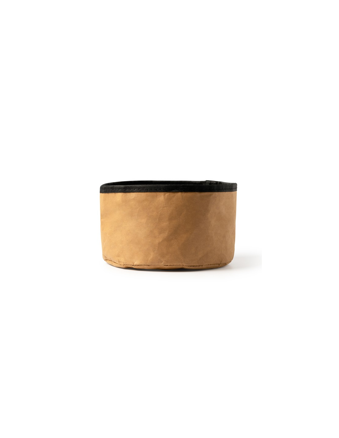 Składana miska dla zwierząt domowych wykonana tkaniny RPET i papieru pochodzącego z recyklingu. Odpowiednia do ciał stałych i cieczy. Pojemność: 1,3 litra.