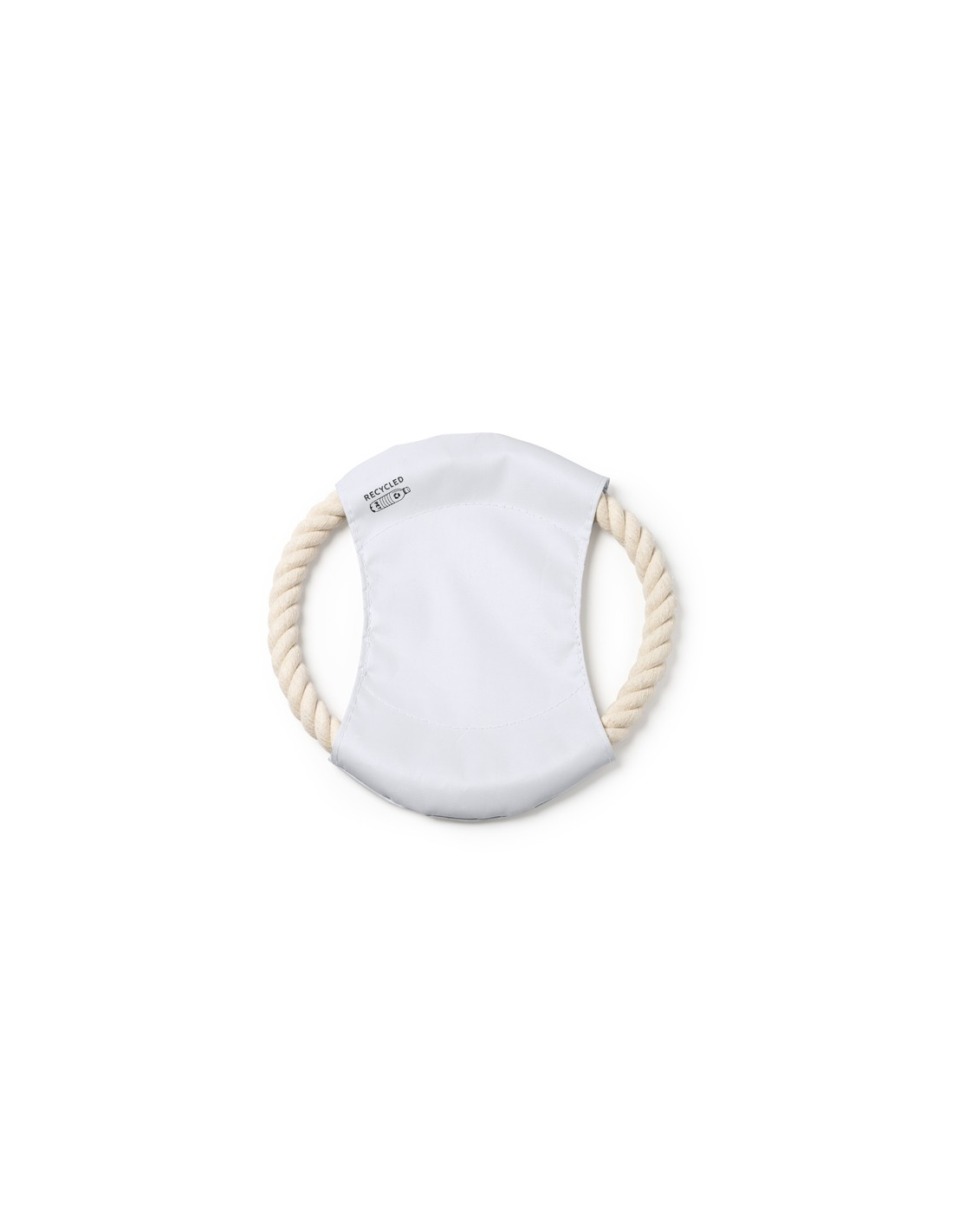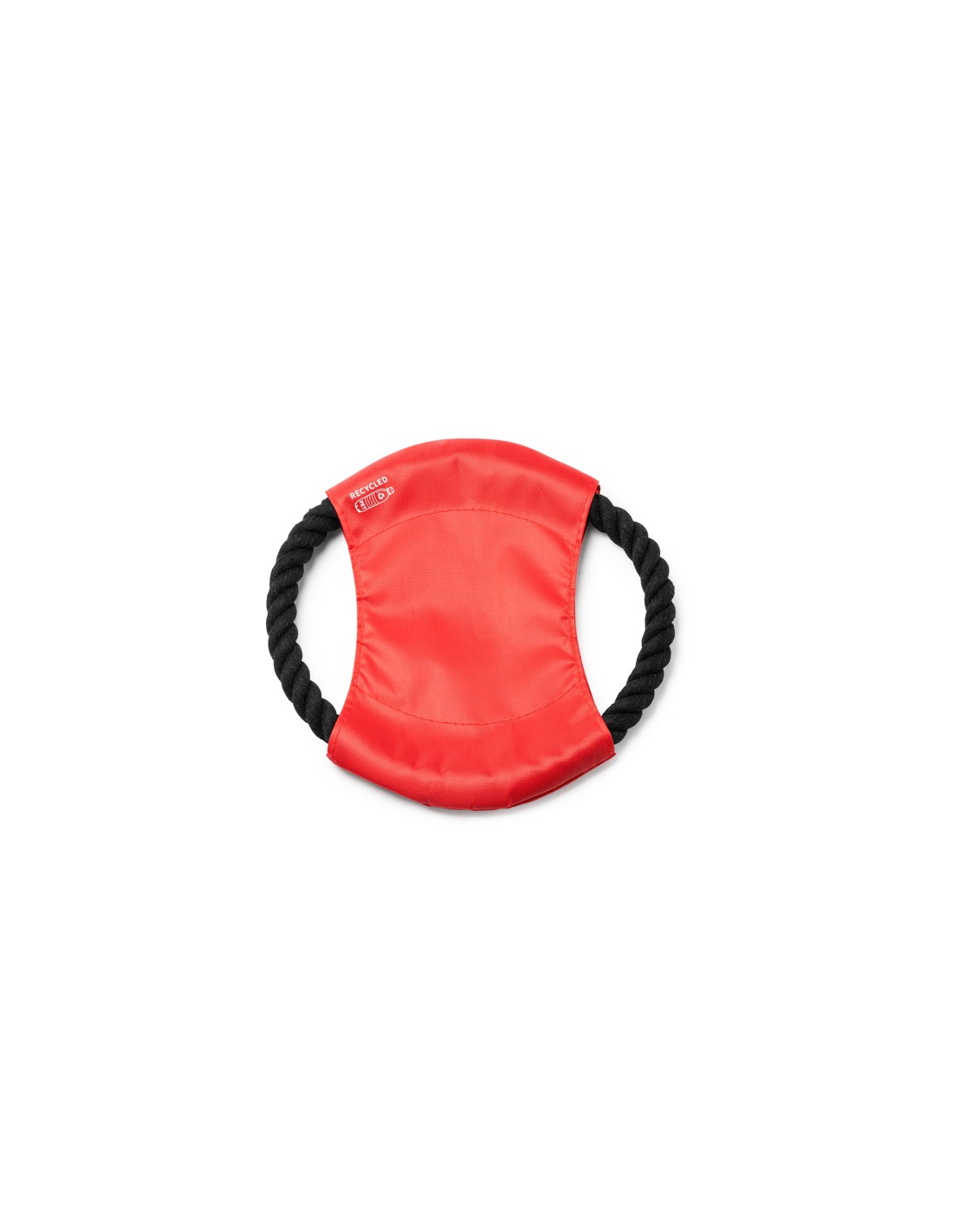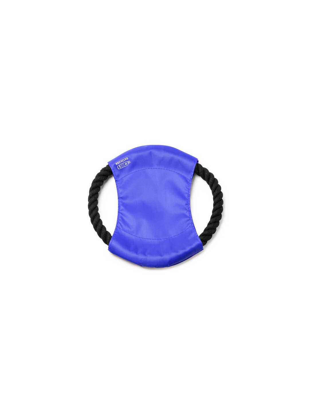 Frisbee dla zwierząt domowych z tkaniny centralnej wykonanej z RPET i bawełnianego sznurka.