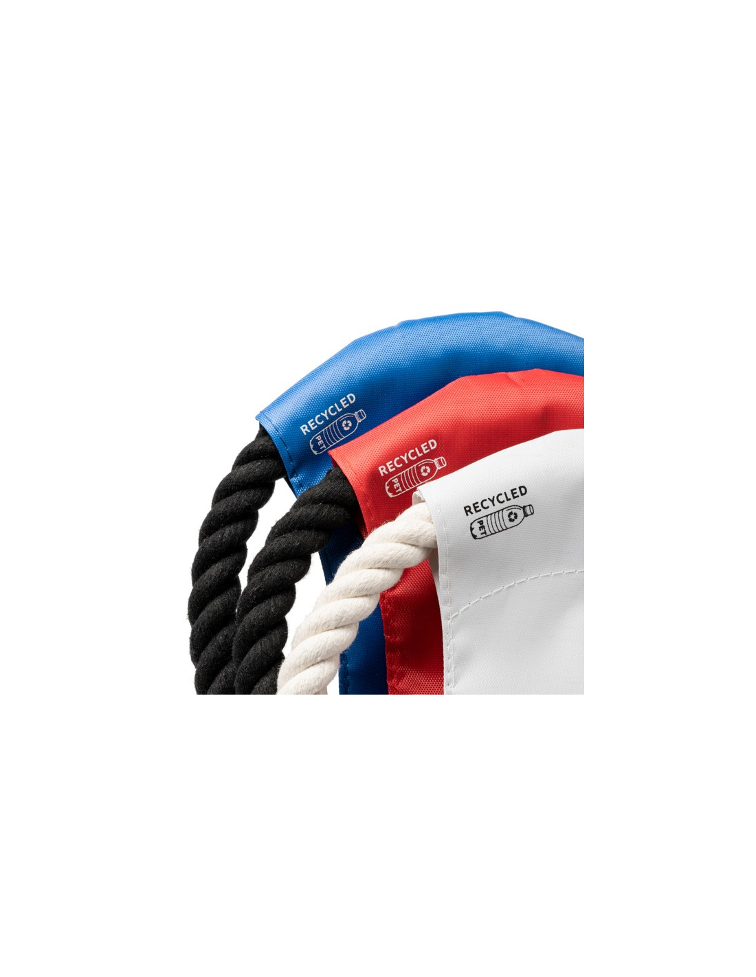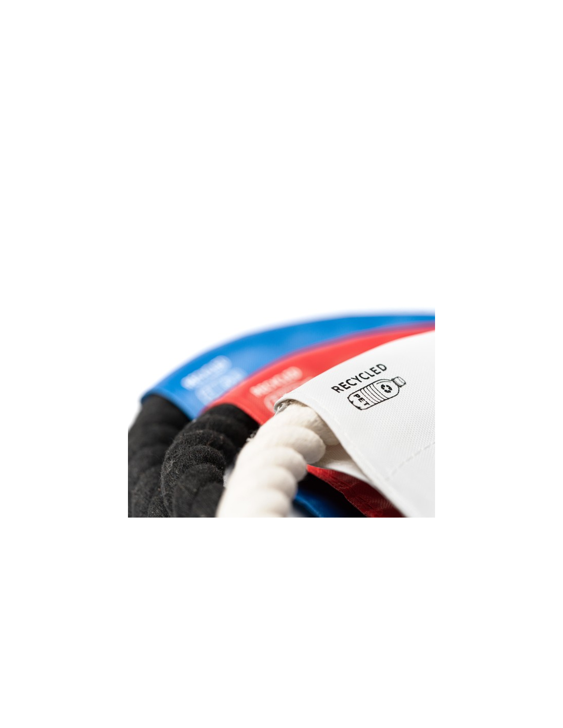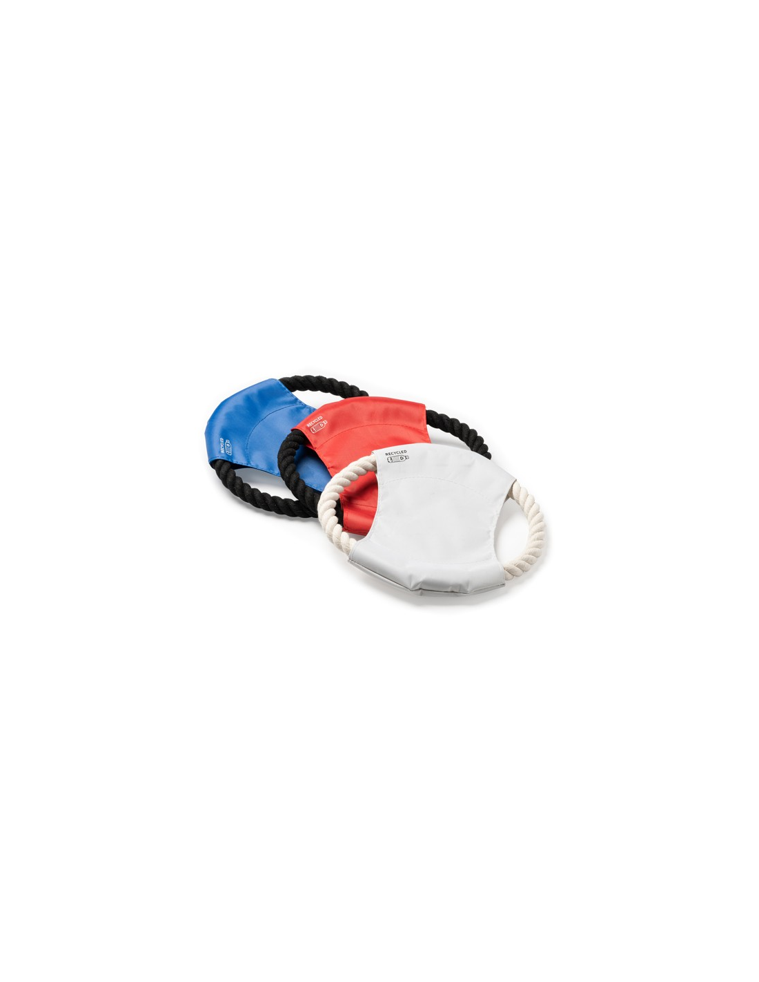 Frisbee dla zwierząt domowych z tkaniny centralnej wykonanej z RPET i bawełnianego sznurka.