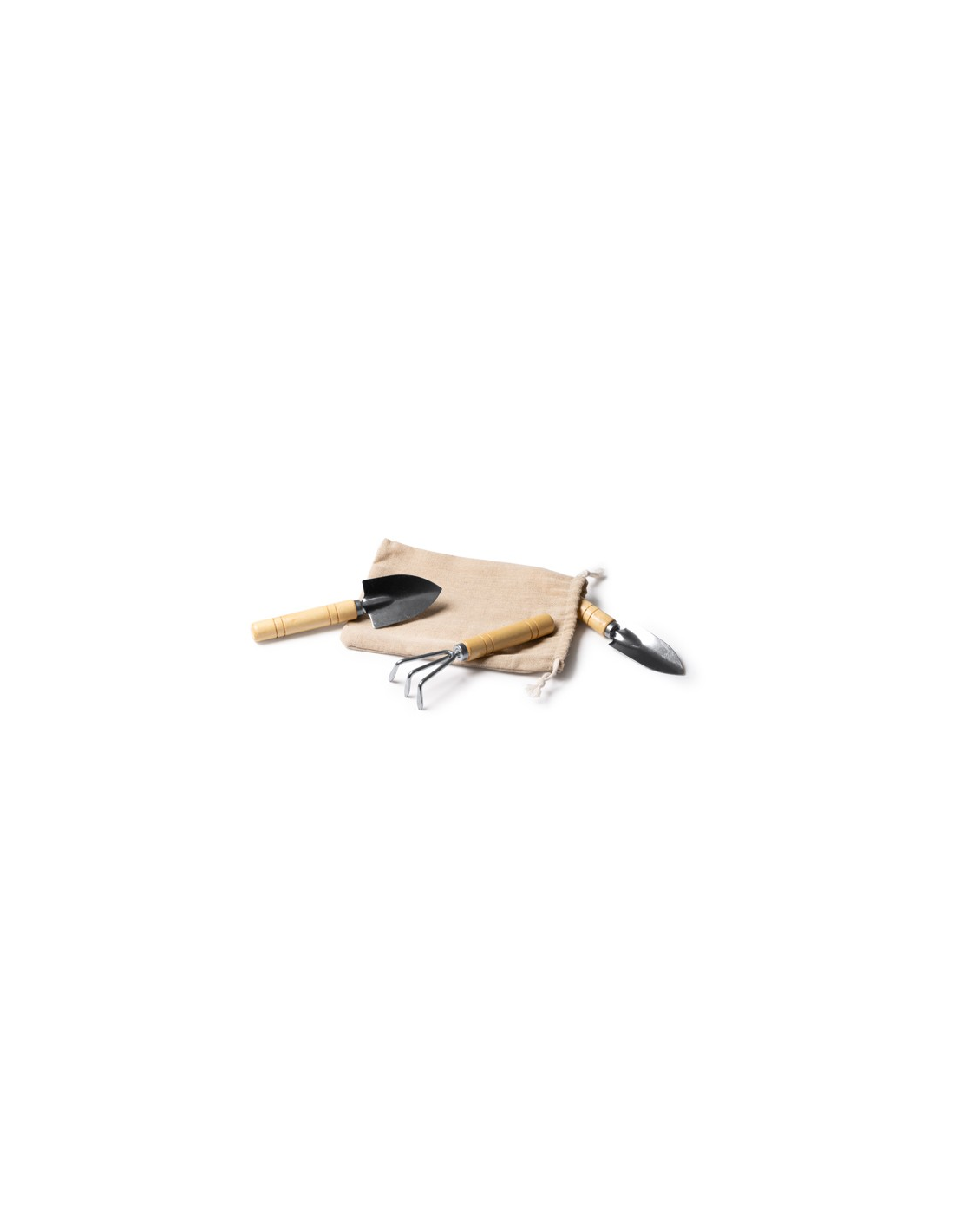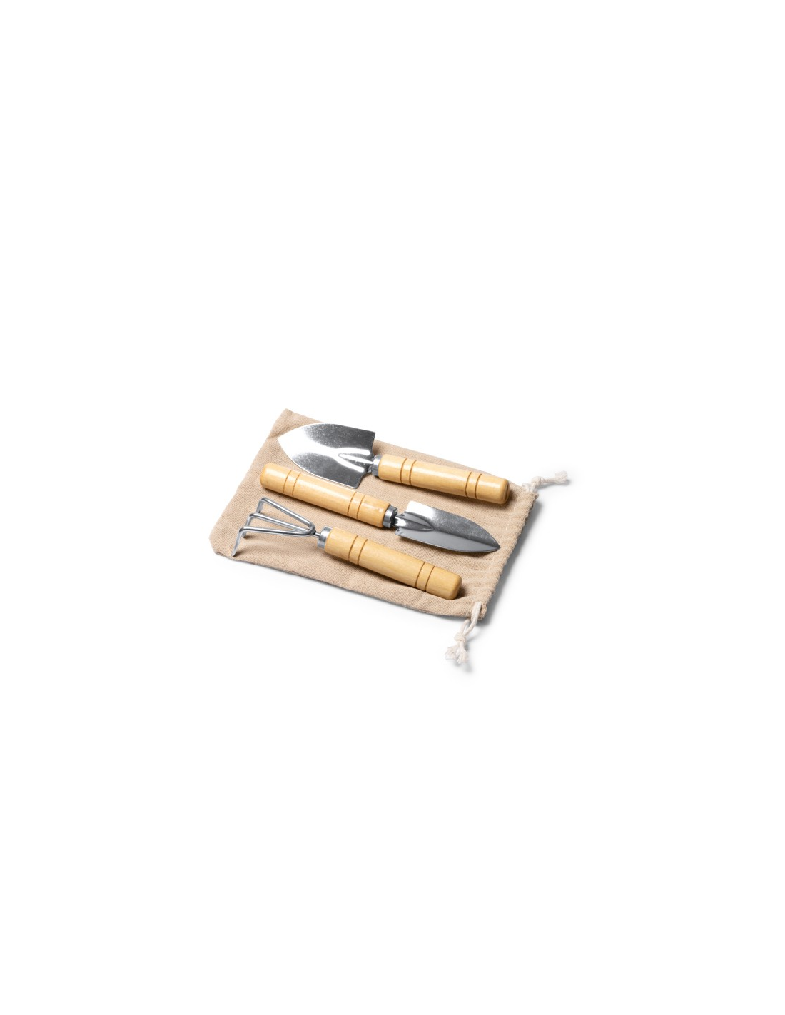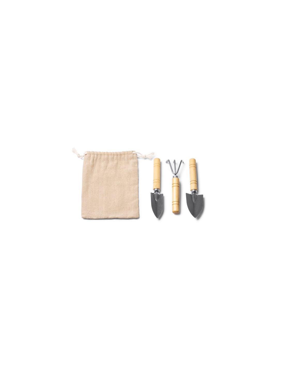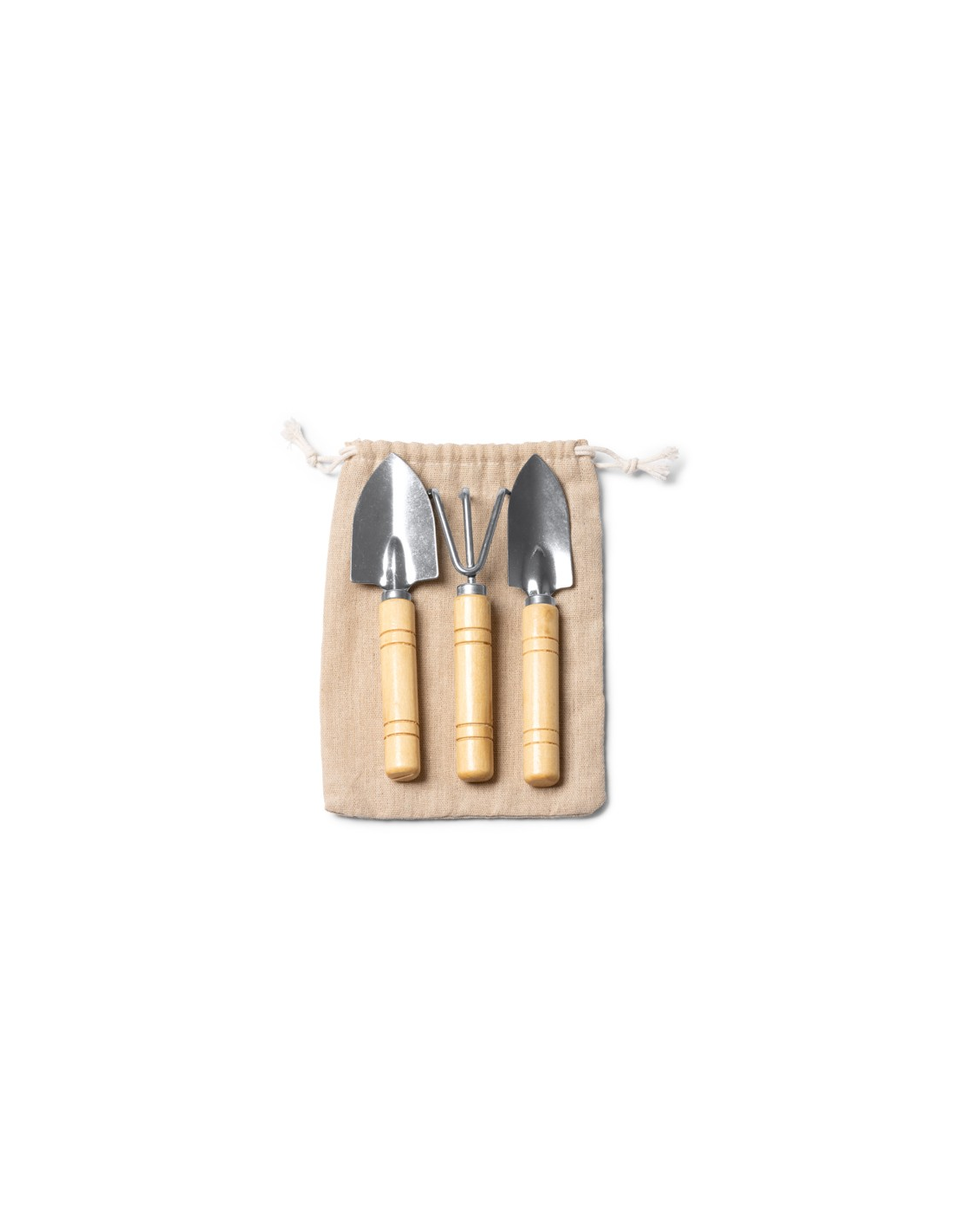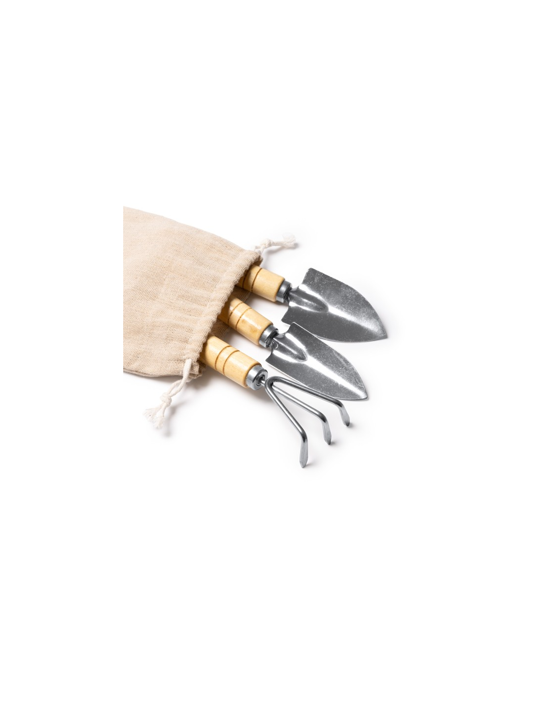 Zestaw narzędzi ogrodniczych zawierający 3 akcesoria wykonane ze stali nierdzewnej z bambusowym uchwytem. Duże ostrze do przesadzania, małe ostrze do przesadzania i grabie w zestawie. Bawełniane etui w zestawie. Zapakowany w pudełku zaprojektowanym z myślą o środowisku.