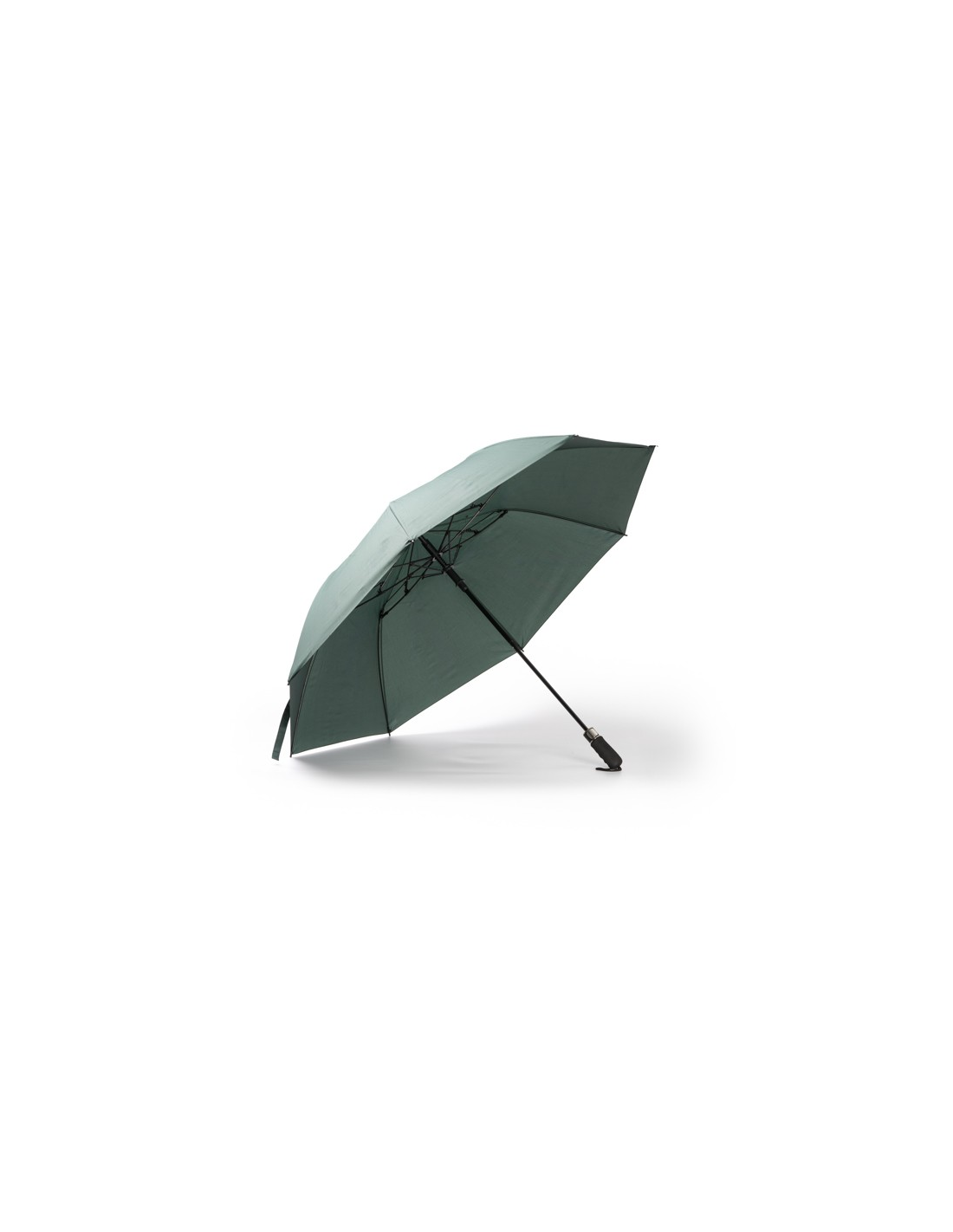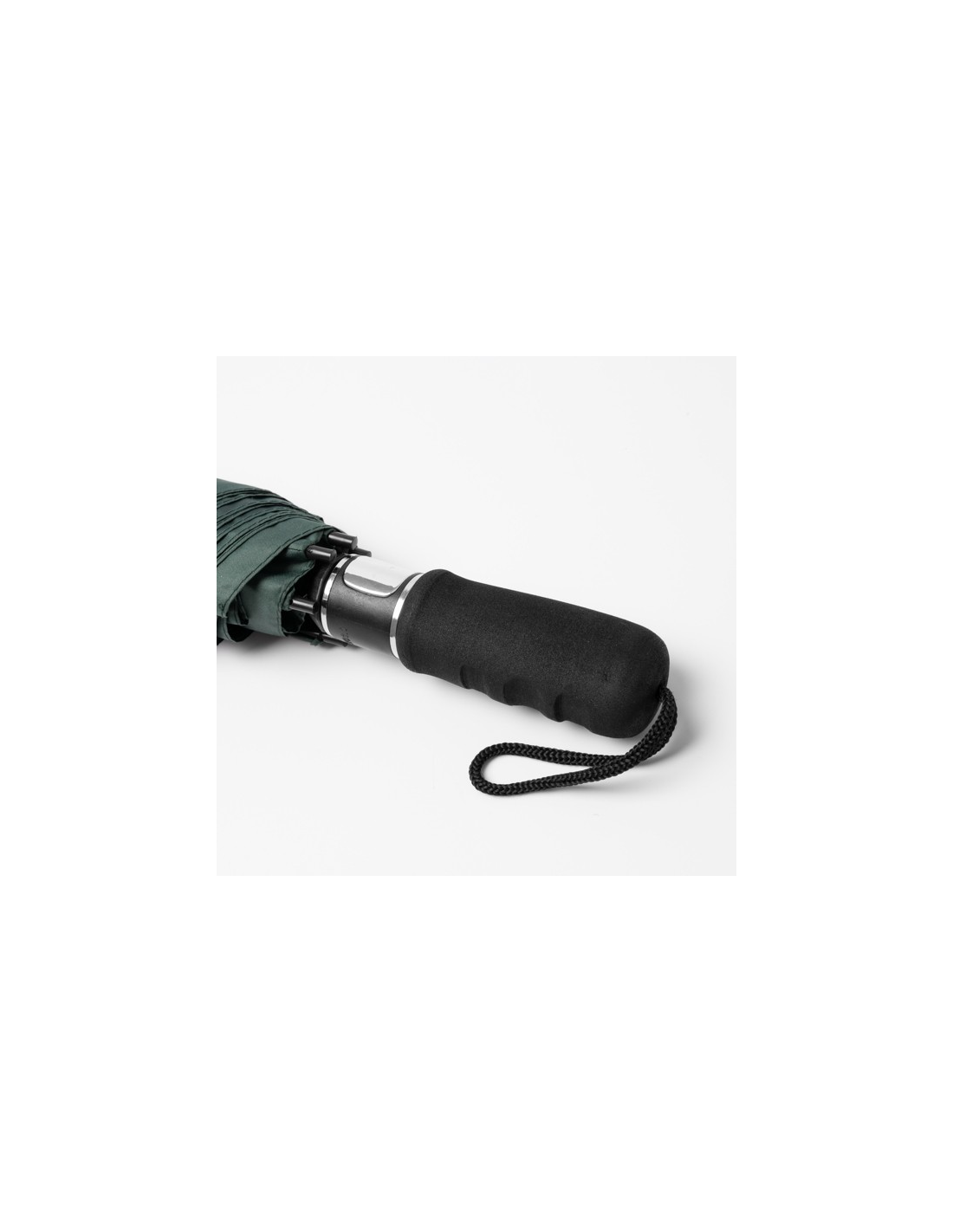 Składany parasol wykonany z tkaniny RPET z automatycznym otwieraniem. Tkanina pongee 210T. Pręty z włókna szklanego z systemem ochrony przed śnieżycą i uchwytem EVA. Zapięcie na rzep. Pasujące etui w zestawie.