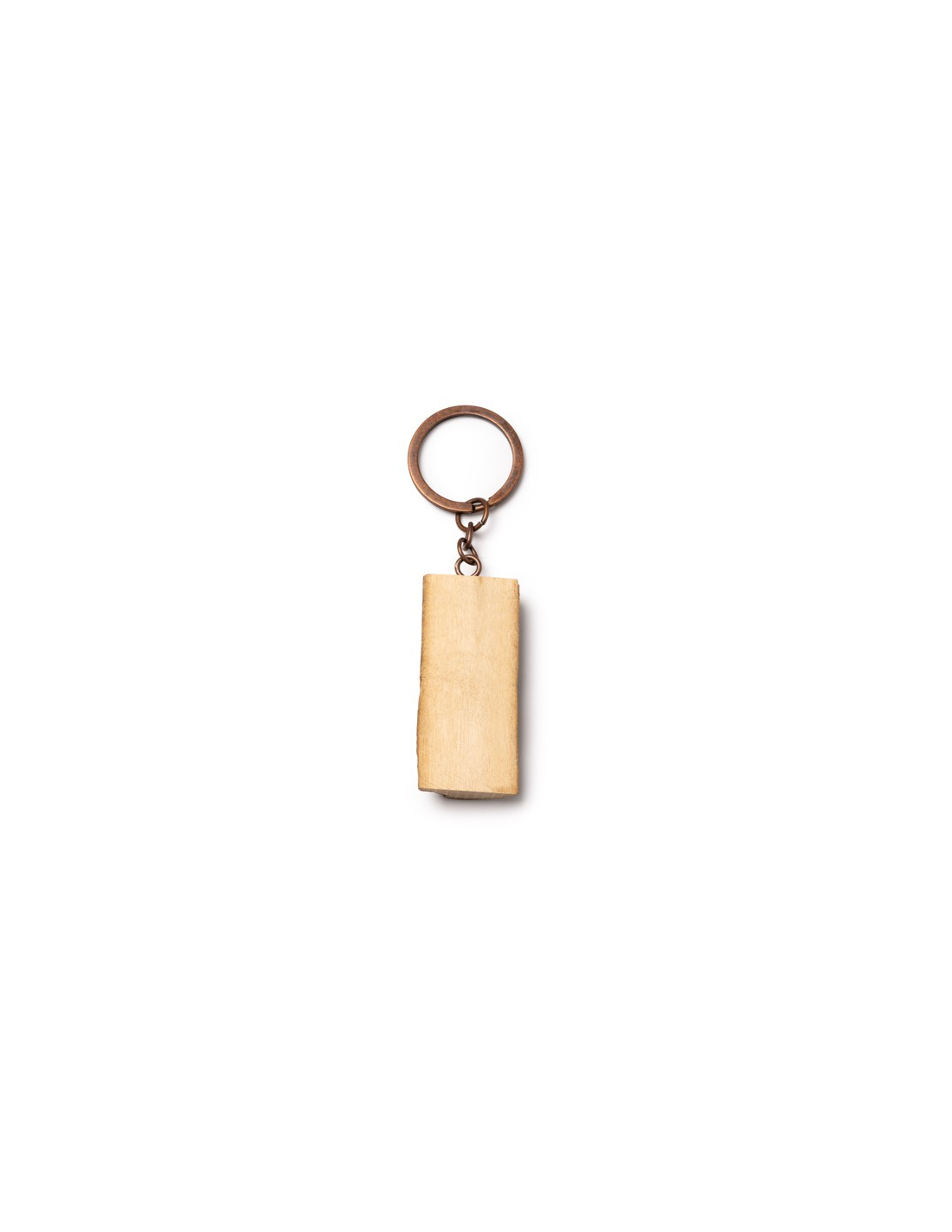 Drewniany brelok i metalowy pierścień.
