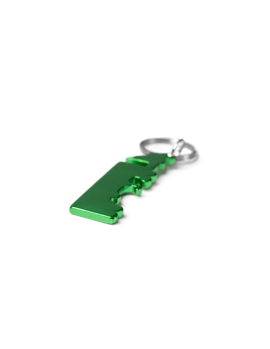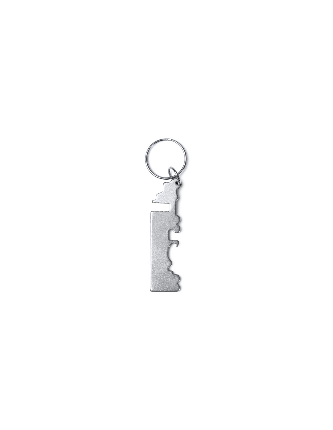 Brelok z otwieraczem do butelek w formie chodnika wykonanego z aluminium pochodzącego z recyklingu.
