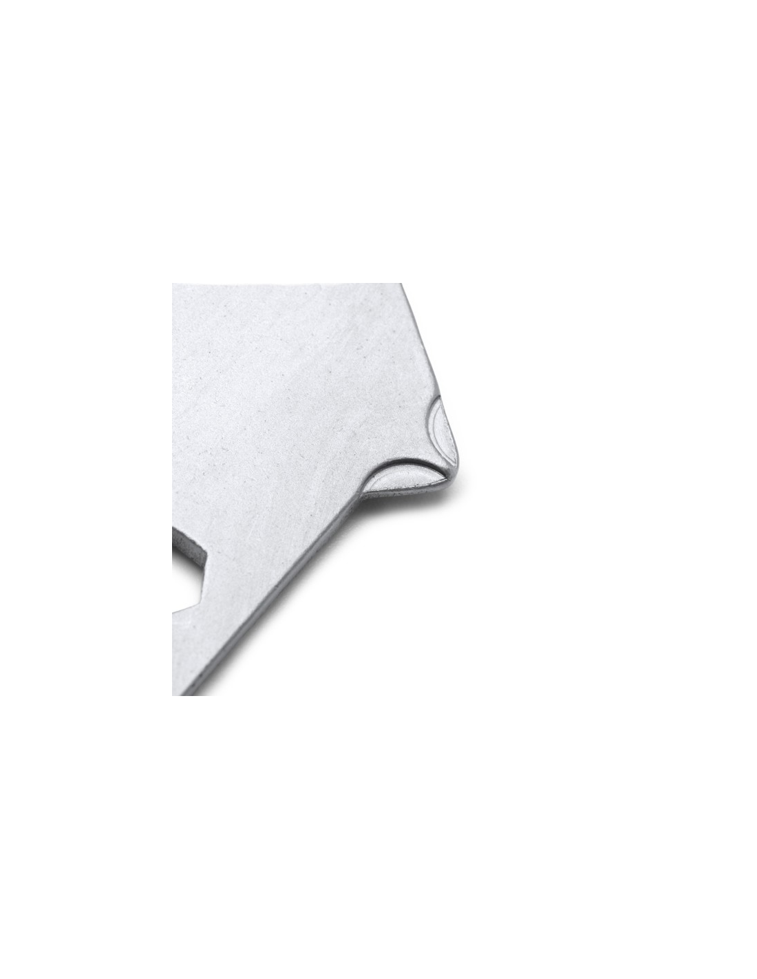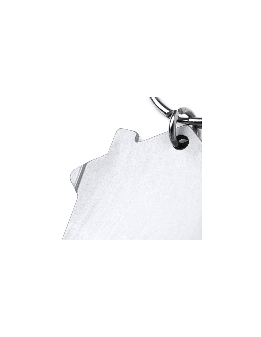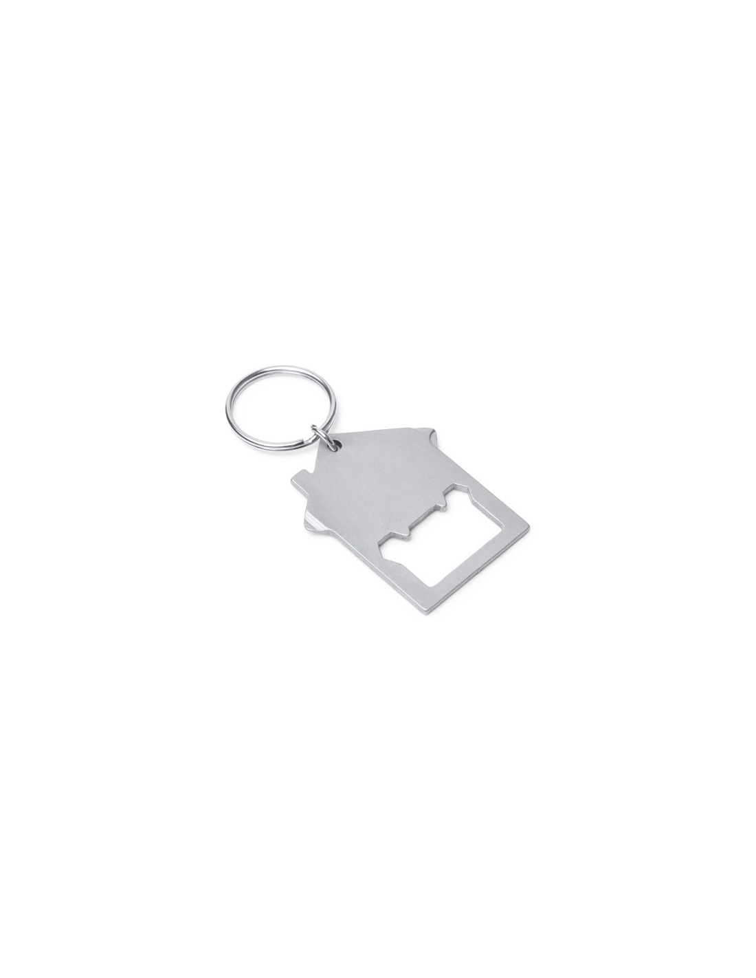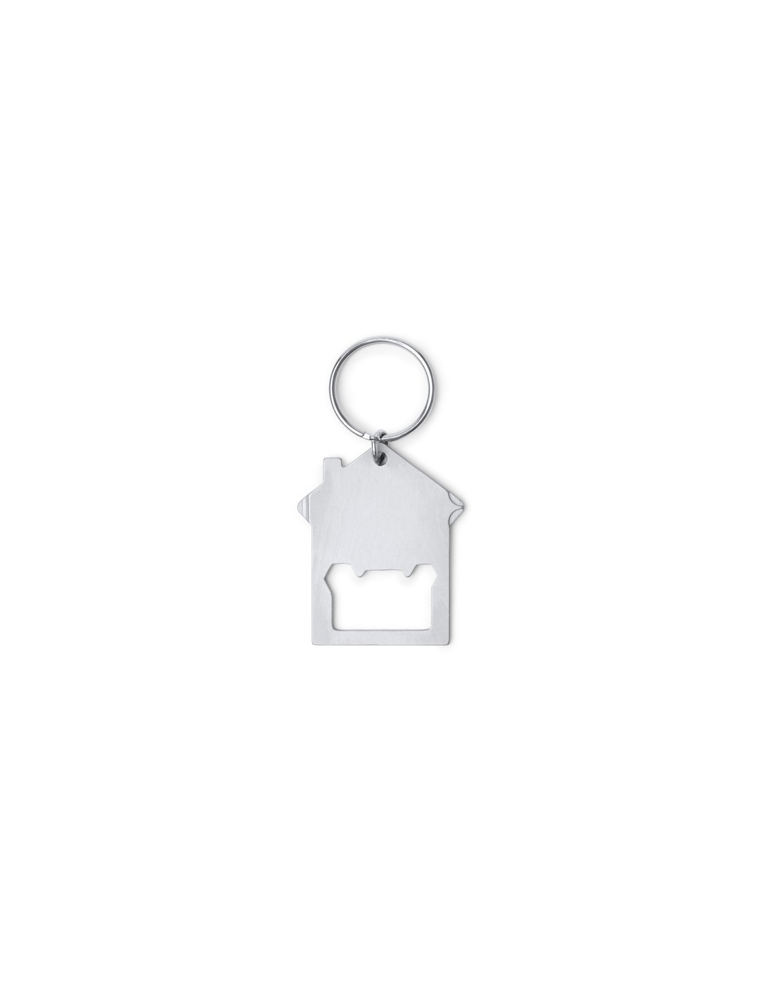 Brelok z narzędziami wielofunkcyjnymi wykonany ze stali nierdzewnej w kształcie domu. Funkcja otwieracza do butelek, śrubokręt płaski i krzyżakowy po bokach, klucz imbusowy M3 i M4 po bokach głównego otworu.