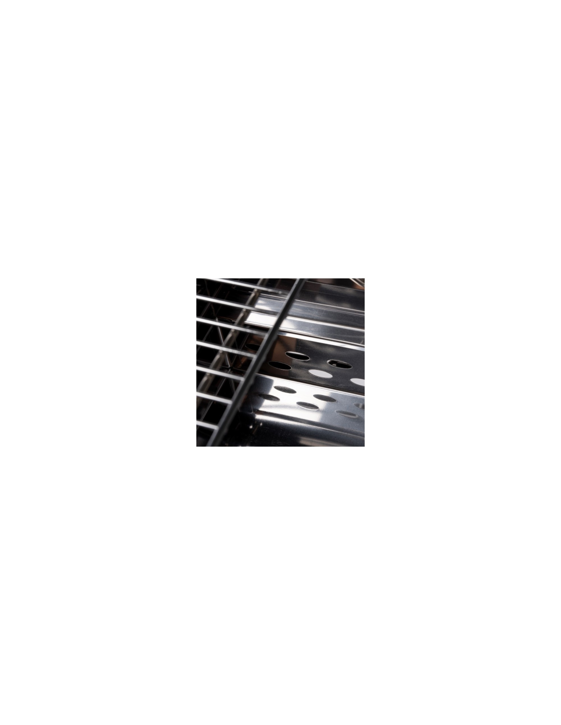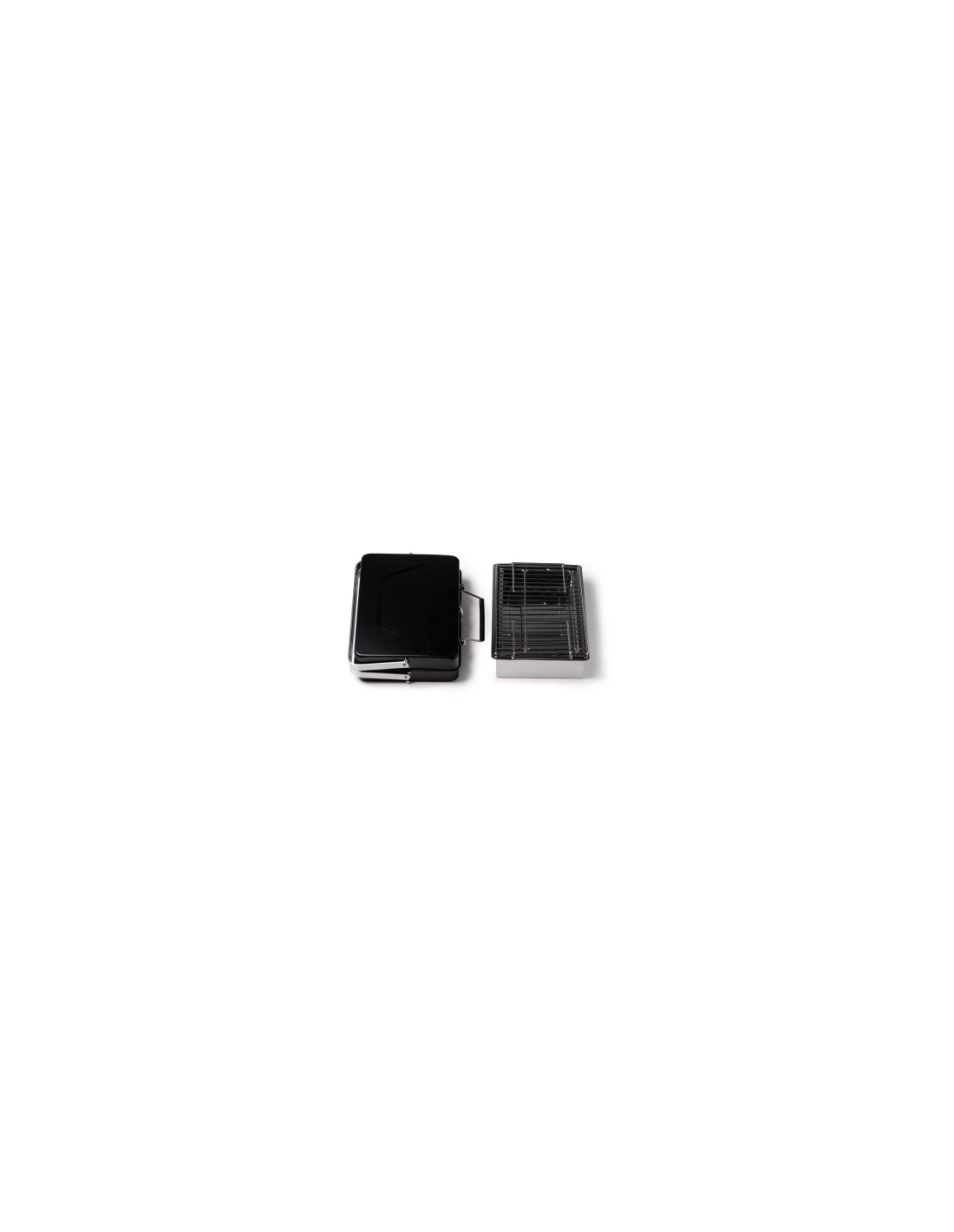 Przenośny grill na węgiel drzewny wykonany ze stali nierdzewnej. Grill składany do formatu teczki. Zapakowany w pudełku zaprojektowanym z myślą o środowisku. Posiada uchwyt do przenoszenia.