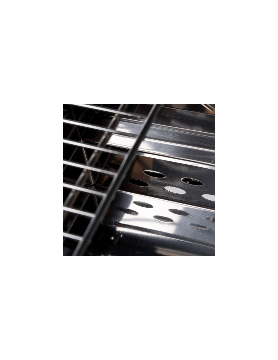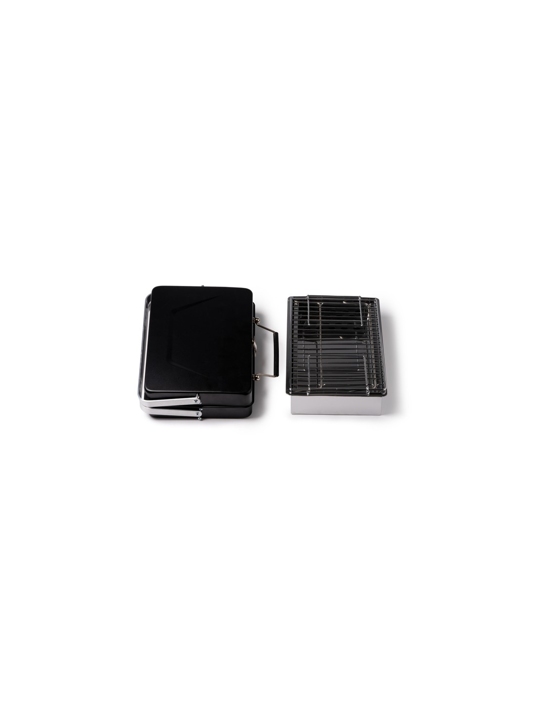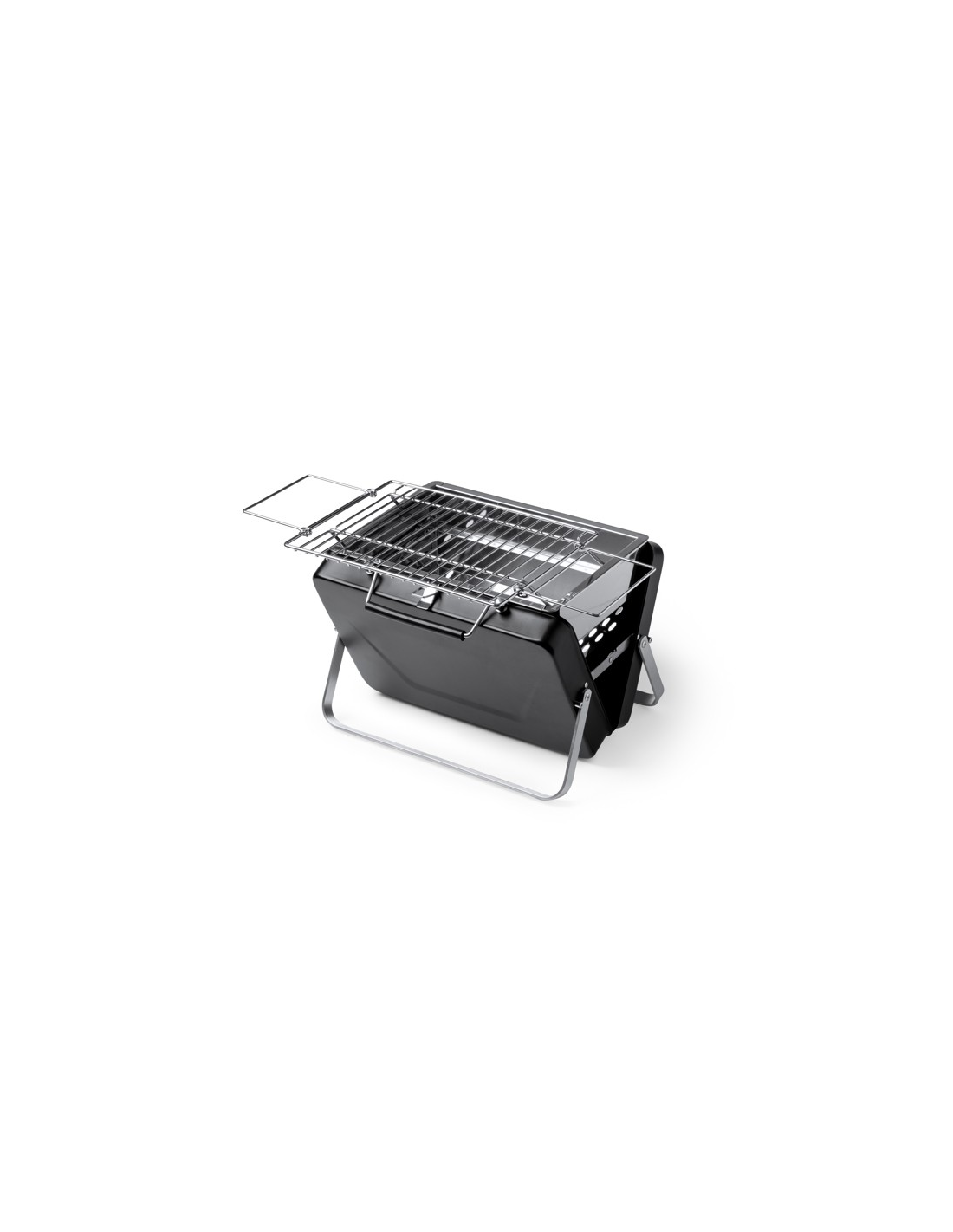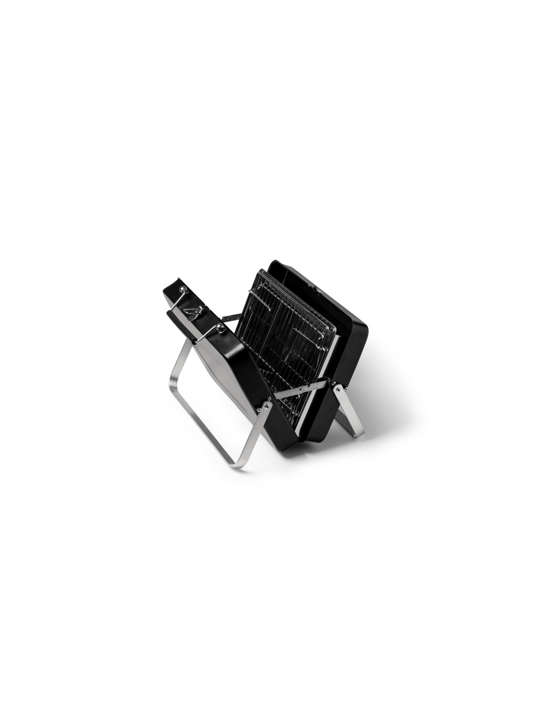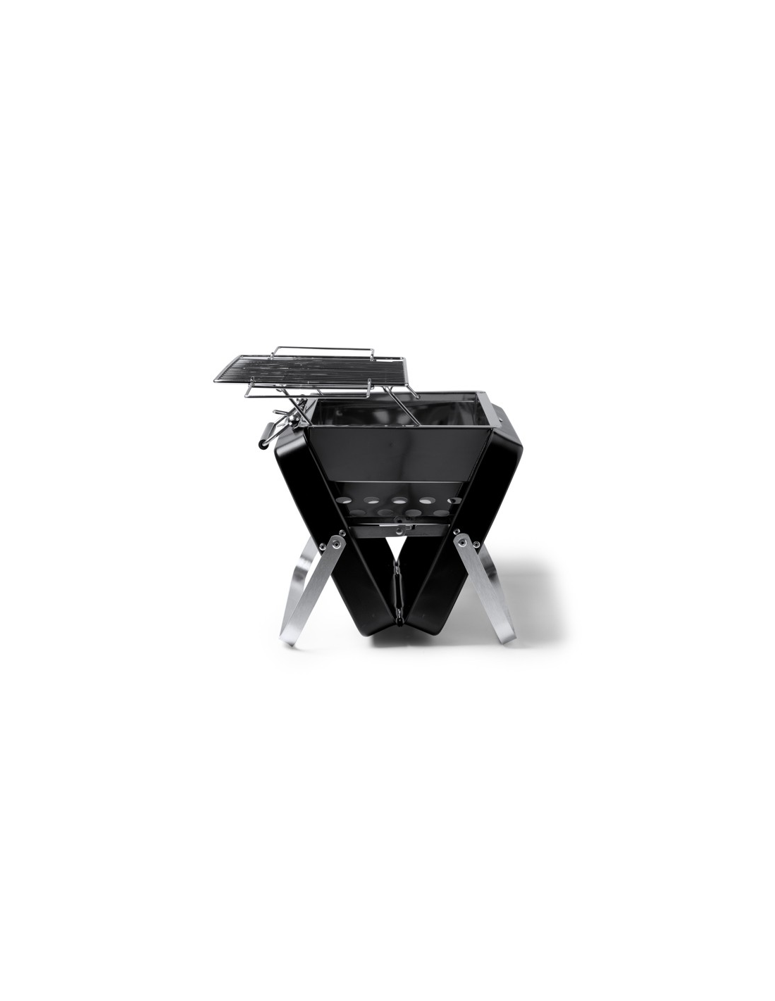 Przenośny grill na węgiel drzewny wykonany ze stali nierdzewnej. Grill składany do formatu teczki. Zapakowany w pudełku zaprojektowanym z myślą o środowisku. Posiada uchwyt do przenoszenia.