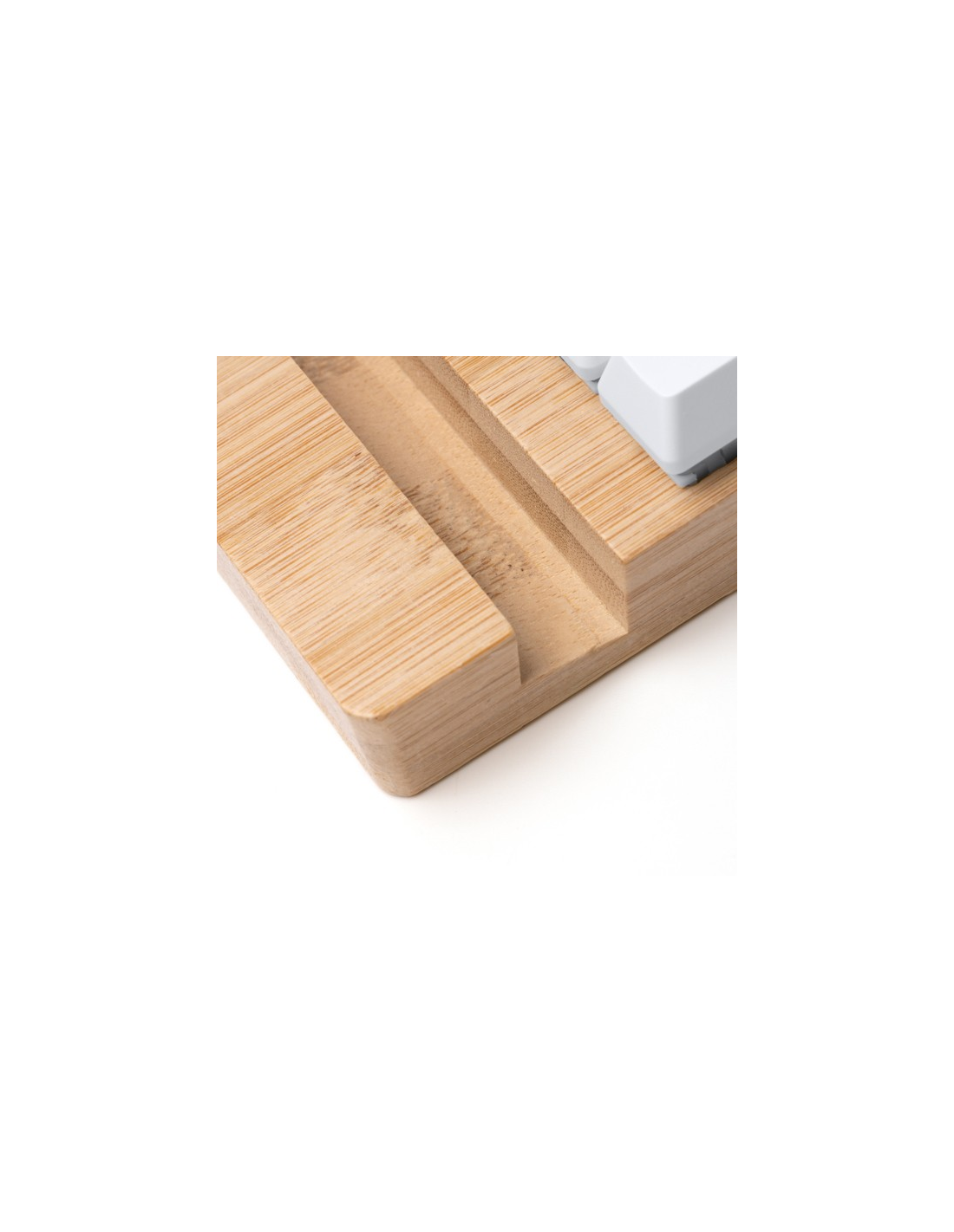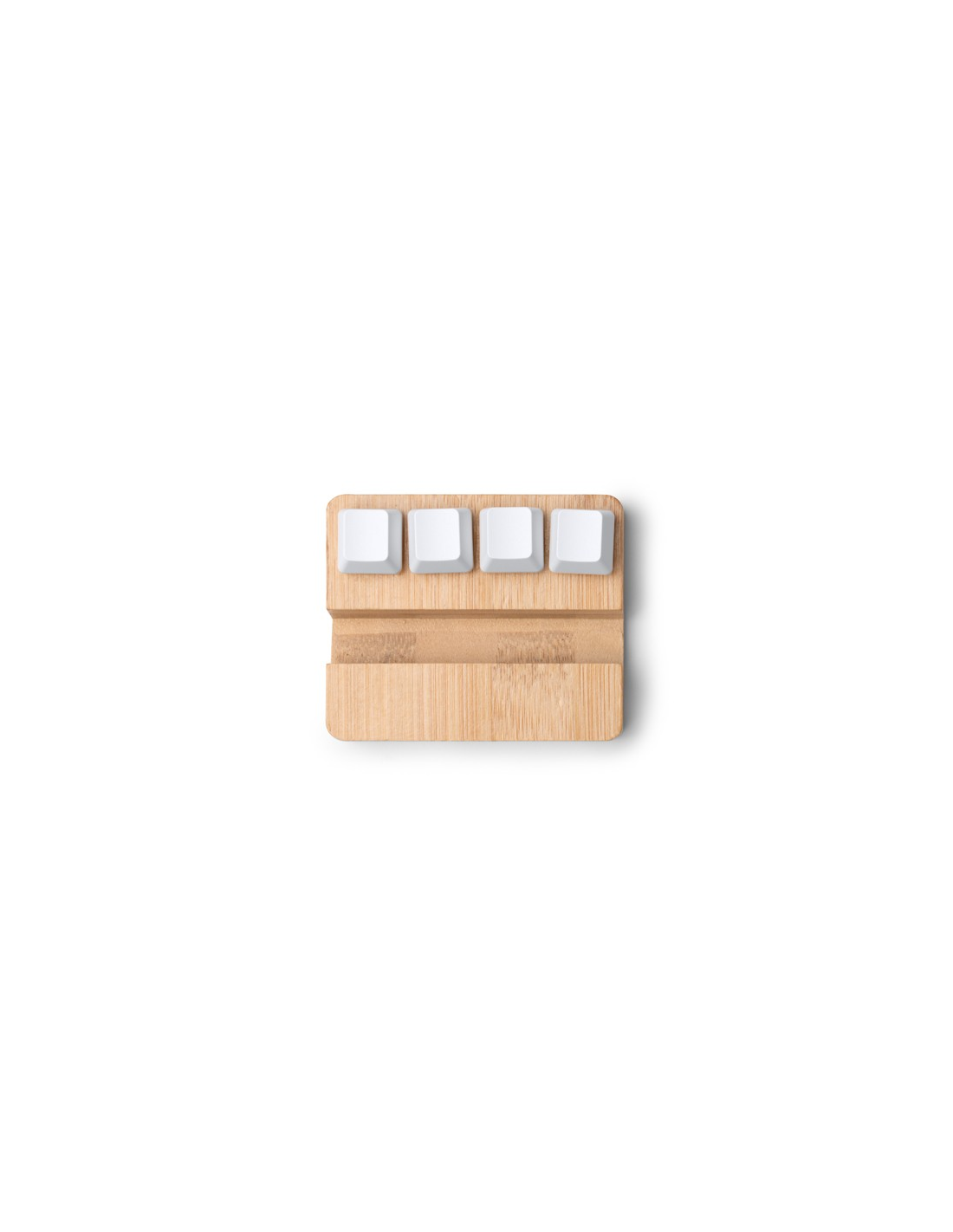 Uchwyt na smartfon z funkcją antystresową wykonany z bambusa. Jego konstrukcja zawiera cztery przyciski klawiatury, które można naciskać i używać jako urządzenia antystresowego.