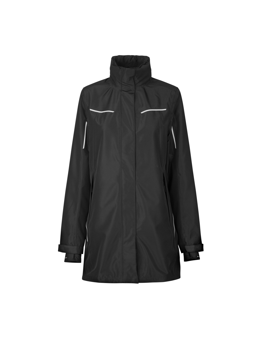 Wyjątkowa funkcjonalna kurtka z wyraźnymi paskami odblaskowymi, w jakości ID Tech®, z wodoodpornym, niezawierającym fluoru wykończeniem BIONIC-FINISH® ECO i z klejonymi szwami. Kurtka jest wiatro- i wodoodporna. Wyposażona jest ponadto w praktyczny dwukierunkowy zamek YKK z ukrytymi zatrzaskami YKK oraz wysoki kołnierz z chowanym regulowanym kapturem. Ukryty ściągacz w rękawie skutecznie chroni przed wiatrem. Praktyczna kieszeń wewnętrzna wyposażona jest w zamek YKK. Dzięki umieszczeniu zamka błyskawicznego w podszewce kurtka umożliwia nałożenie nadruku. Polarowe produkty Zip-n-Mix (0807, 0848, 0781 i 0793) można z powodzeniem łączyć z kurtką membranową jako warstwą izolującą. Dostępne są również spodnie zewnętrzne (0714) w tej samej jakości. Model długi.