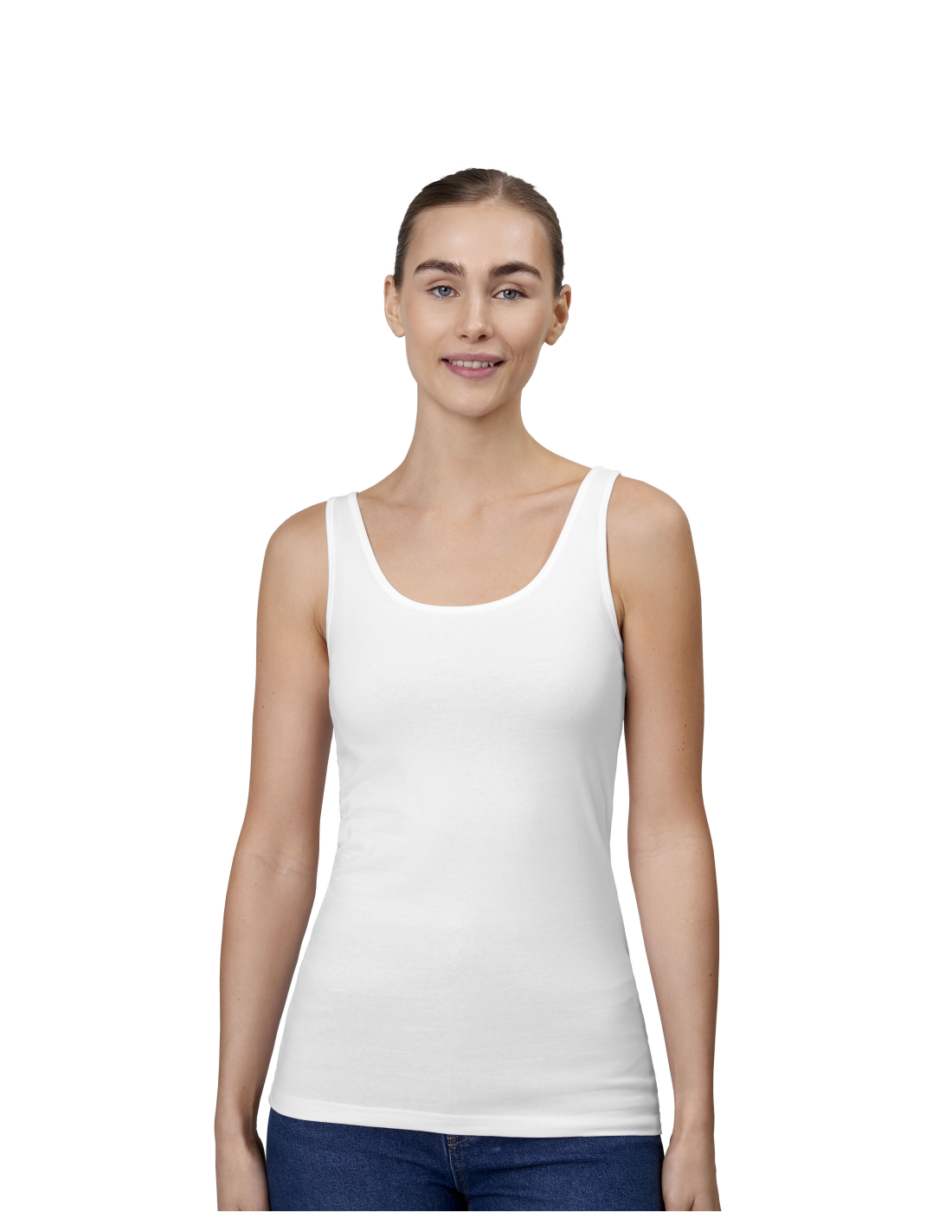 Damski tank top wykonany z elastycznej bawełny, zapewniający wygodę i idealne dopasowanie do sylwetki. Lekki, oddychający i uniwersalny model, który świetnie sprawdzi się w codziennym użytkowaniu, pracy oraz jako odzież firmowa pod nadruk lub haft.