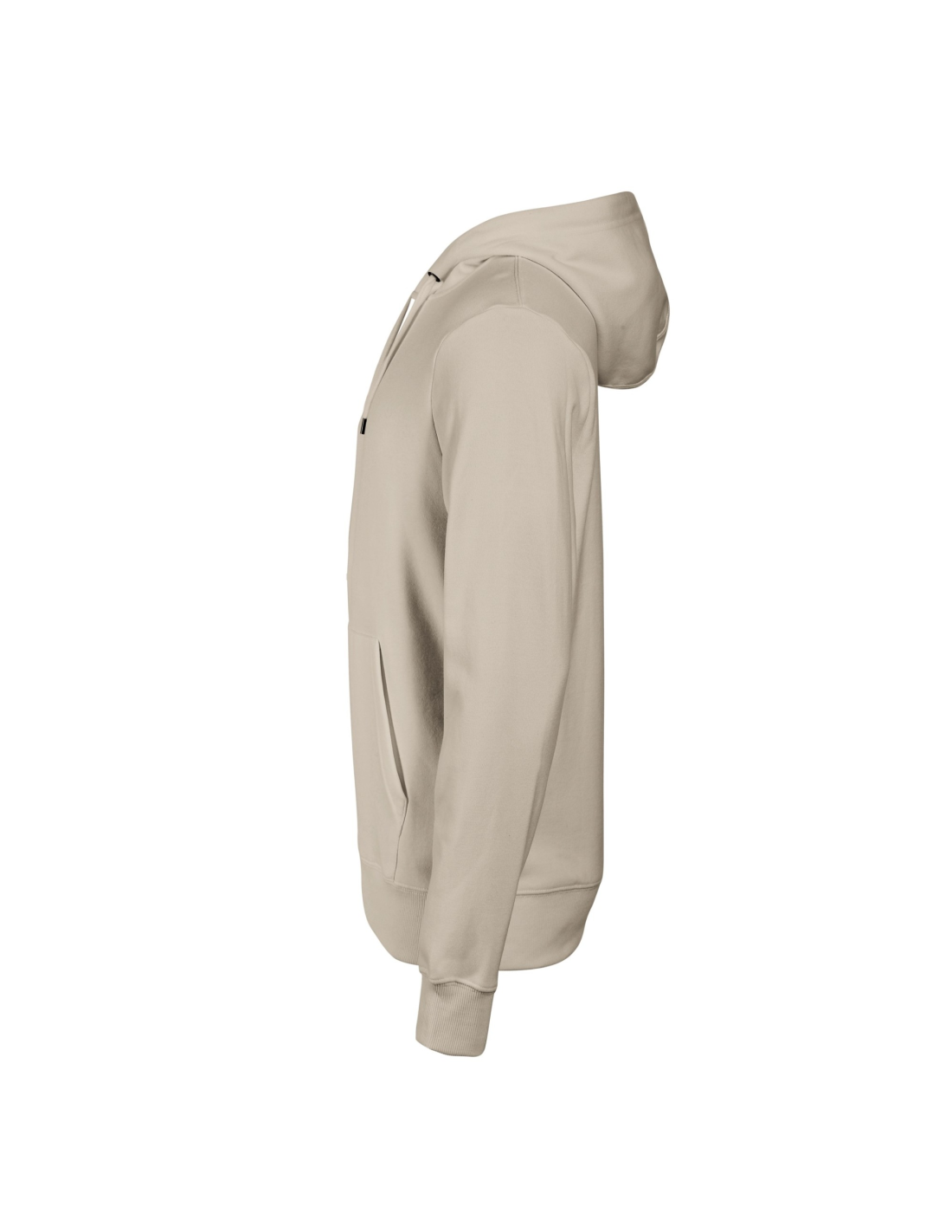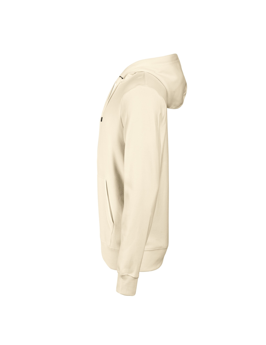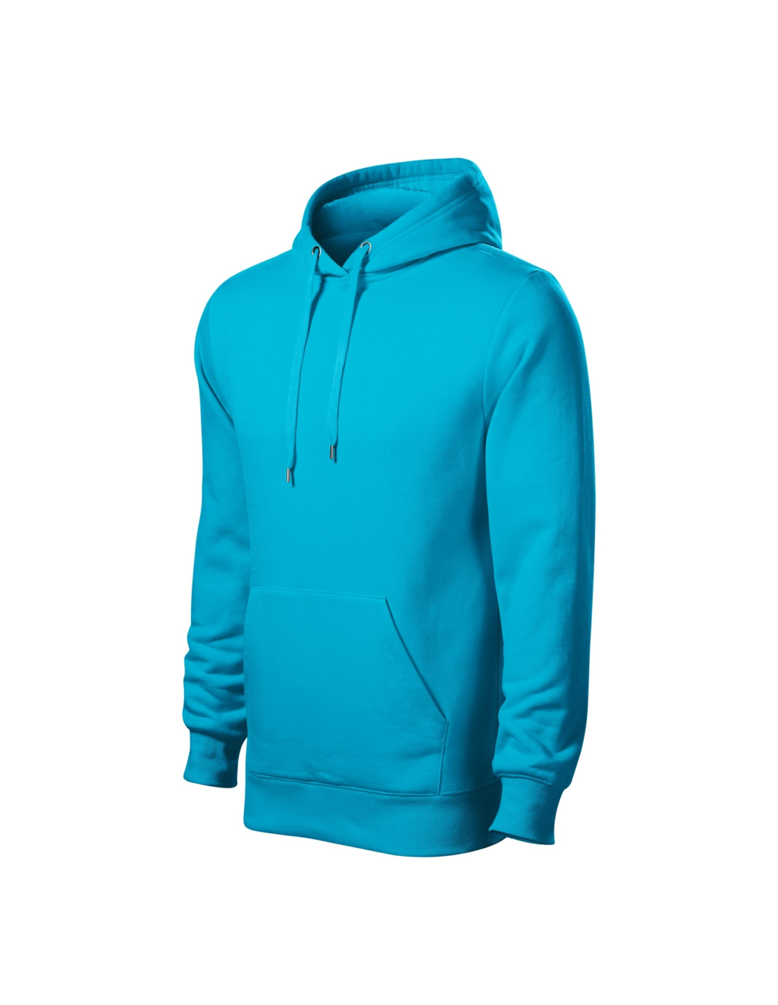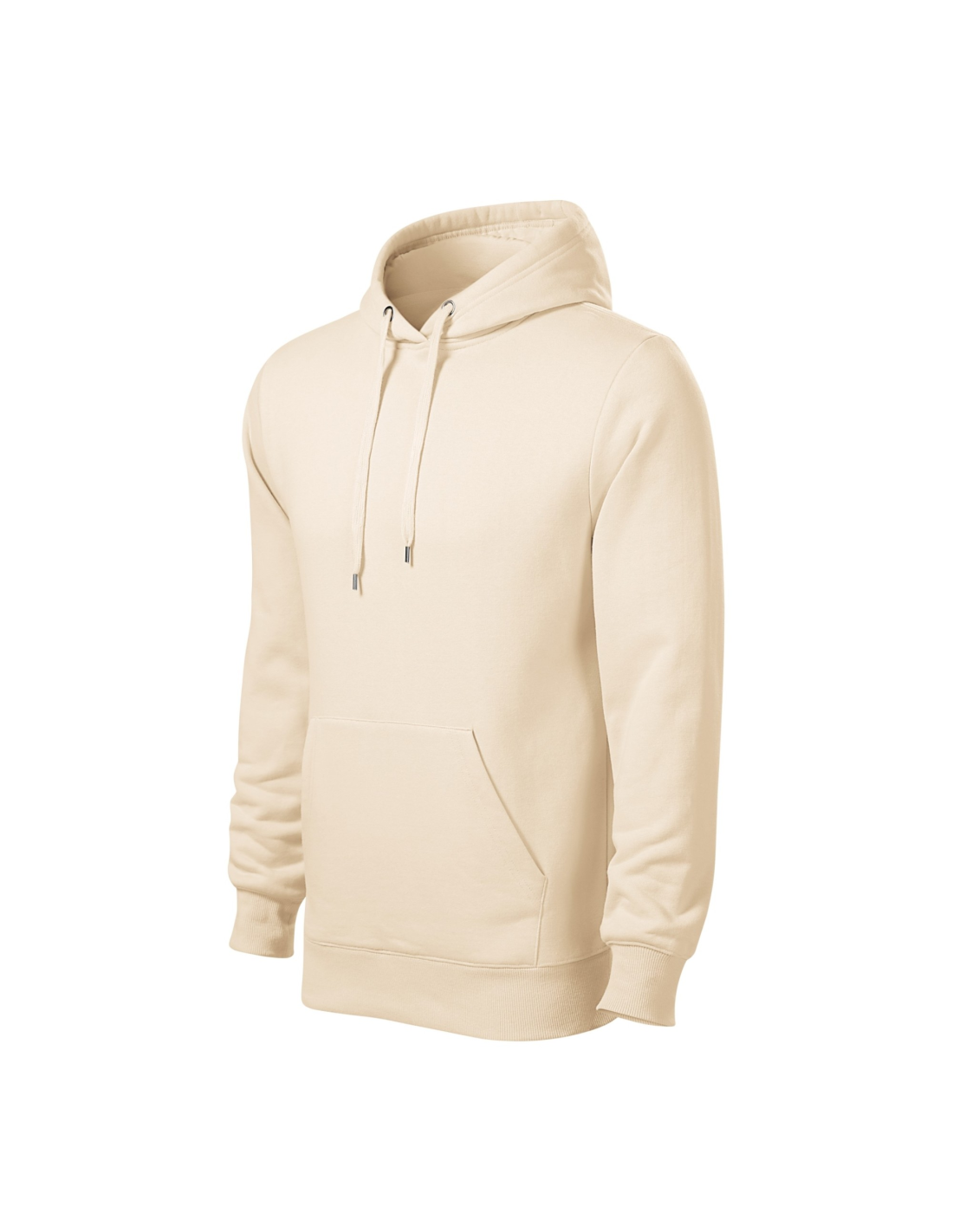prosty krój ze szwami bocznymi, kaptur z podszewką ściągany za pomocą sznurka, wewnętrzna tylna część lamówki wzmocniona kolorową taśmą z materiału wierzchniego, kieszeń typu kangurka, dolny ściągacz i mankiety rękawów z dzianiny ściągaczowej 2:2 z dodatkiem 5 % elastanu, czesana strona wewnętrzna