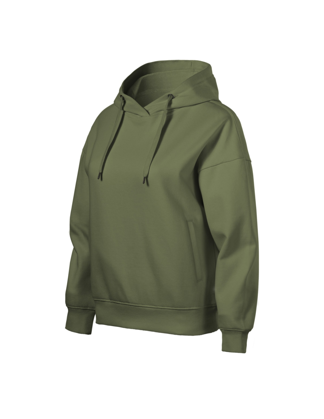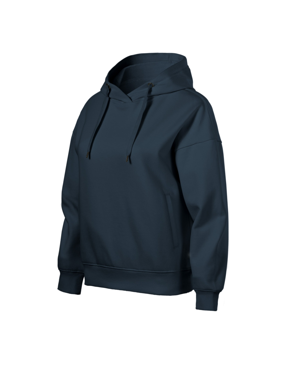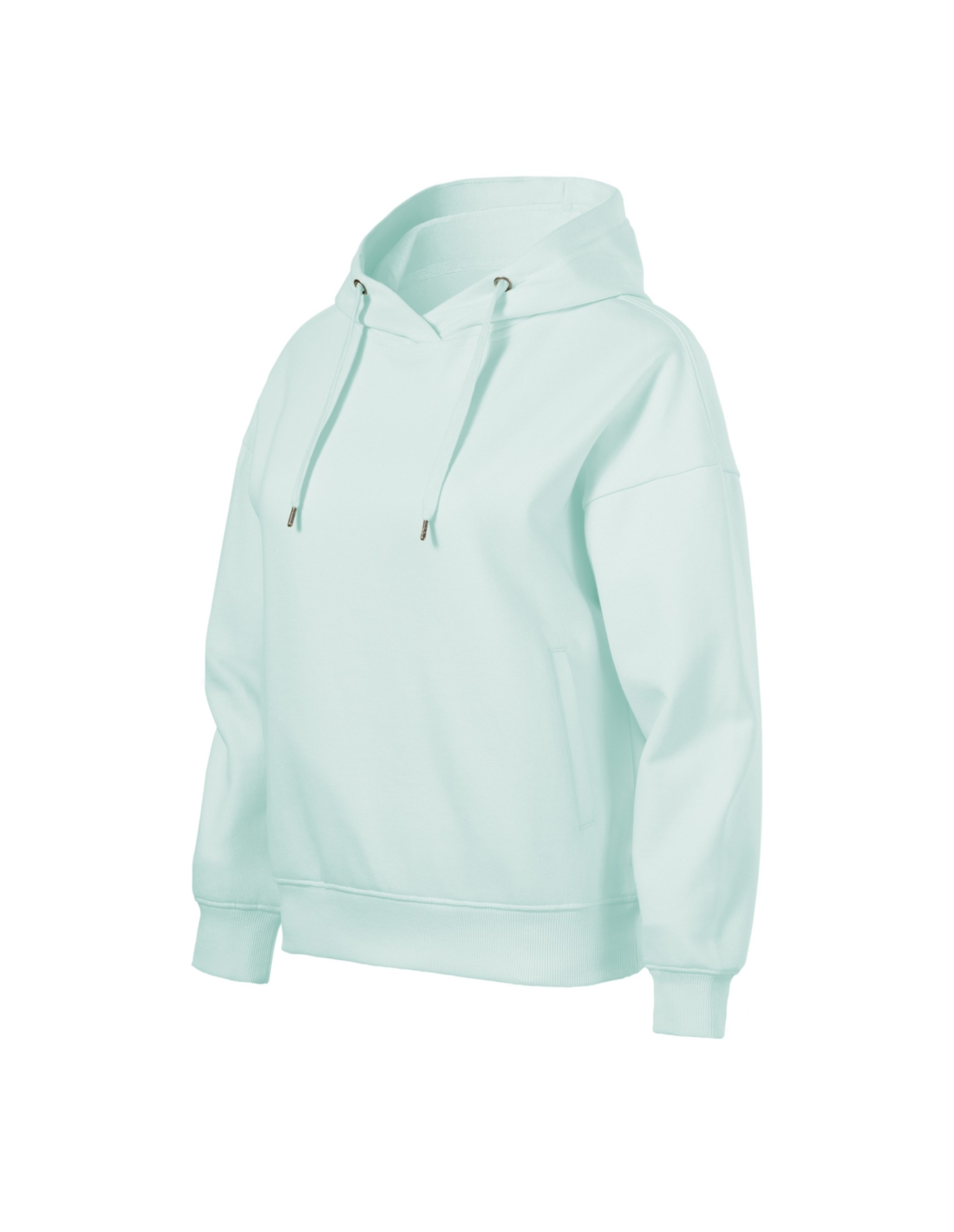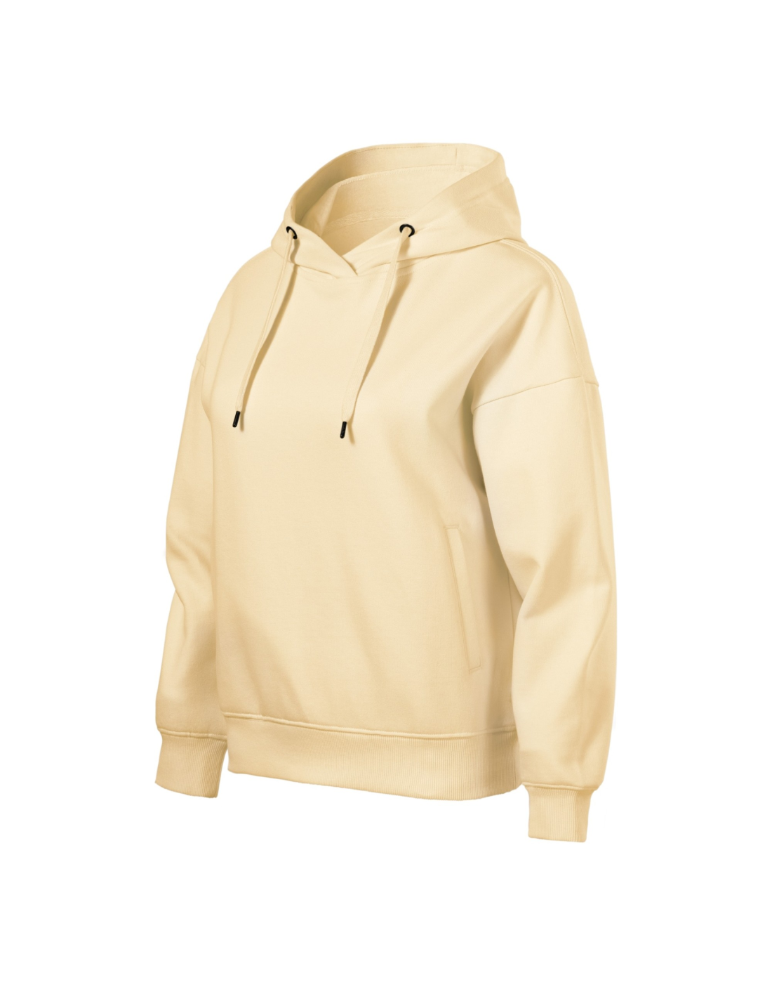 bez etykiety - gotowy do rebrandingu, luźny krój ze szwami bocznymi, kaptur z podszewką ściągany za pomocą sznurka, etykieta na lamówce z tyłu w neutralnym rozmiarze, wewnętrzna tylna część lamówki wzmocniona kolorową taśmą z materiału wierzchniego, przedłużona linia ramion, wszyte kieszenie typu kangurka, dolny ściągacz i mankiety rękawów z dzianiny ściągaczowej 2:2 z dodatkiem 5 % elastanu, czesana strona wewnętrzna