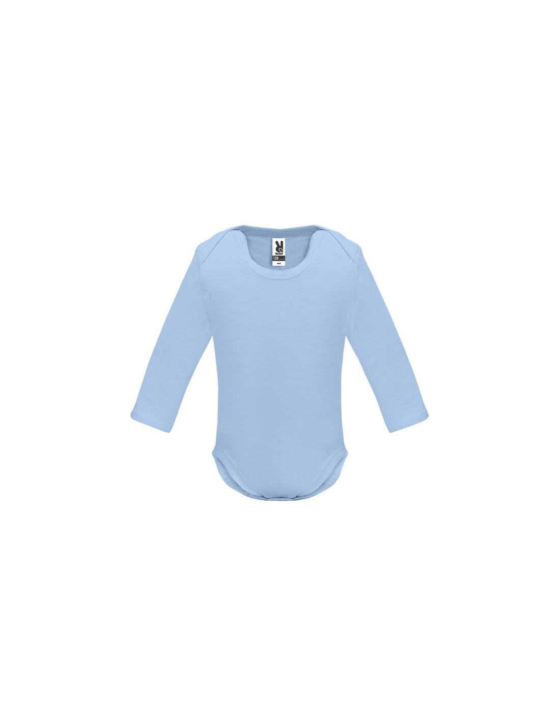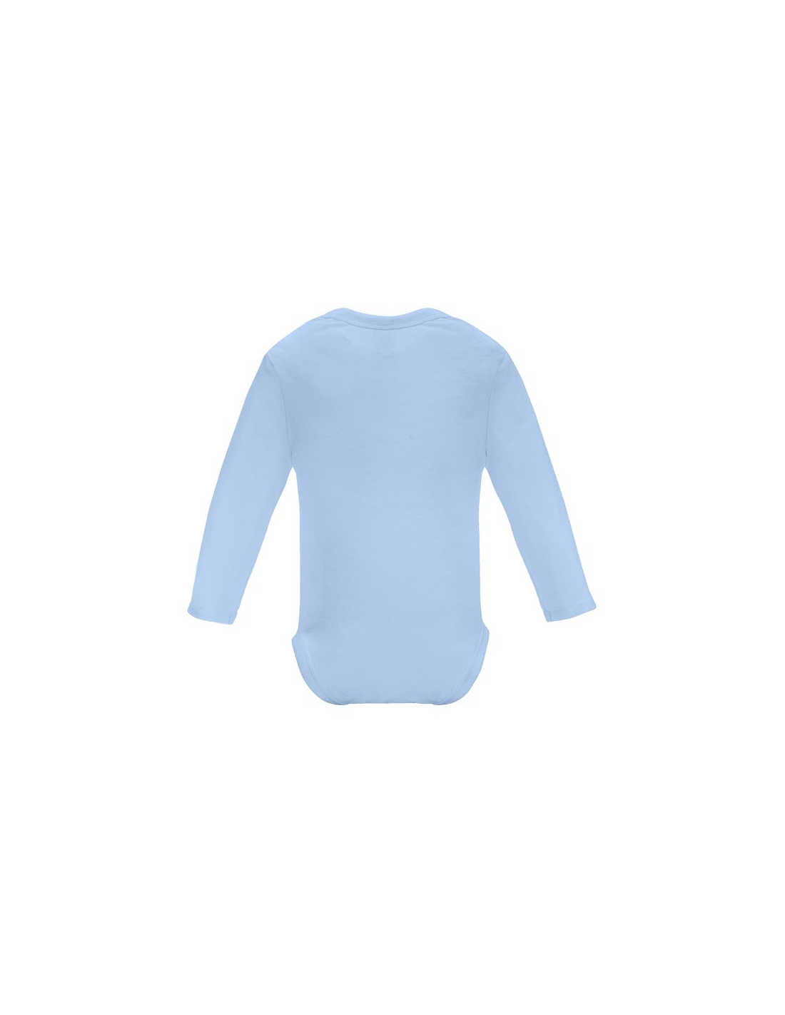 Body z długim rękawem dla niemowląt, tkanina single jersey. Okrągły dekolt wykończony lamówką 1x1. Zapięcie na guzik zatrzaskowy w kroku.