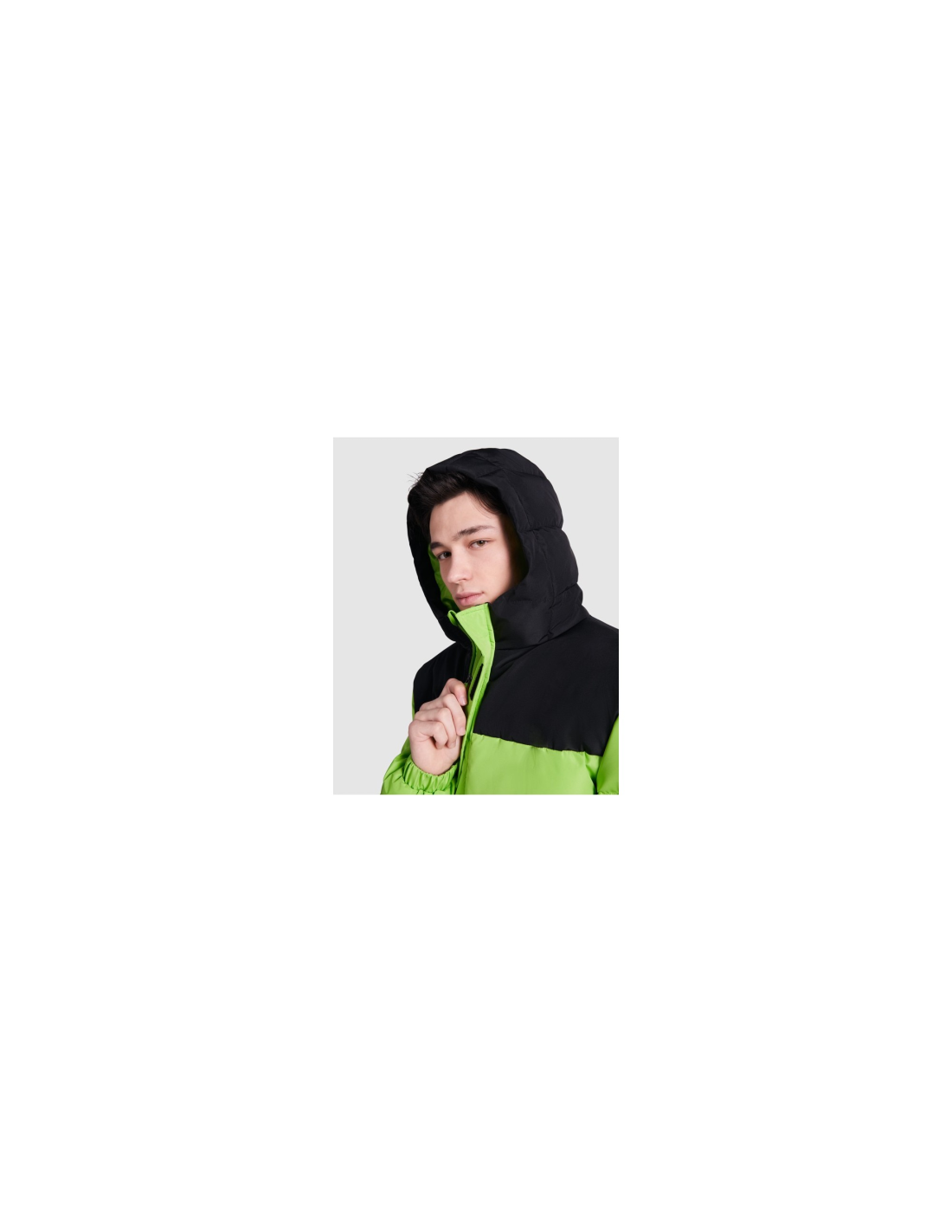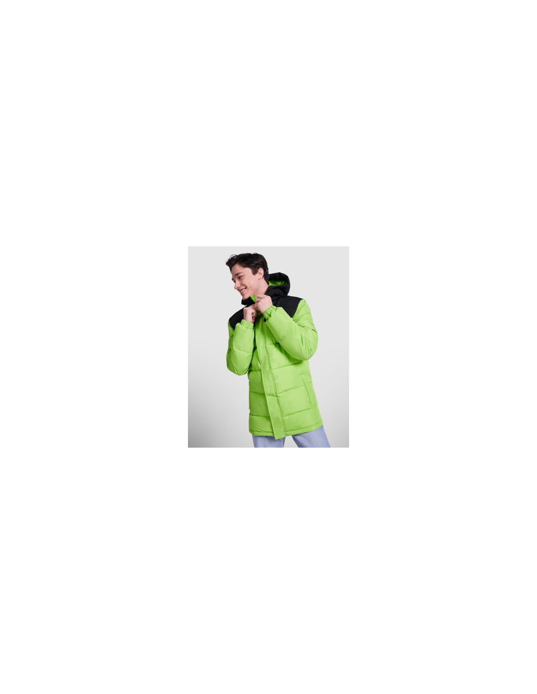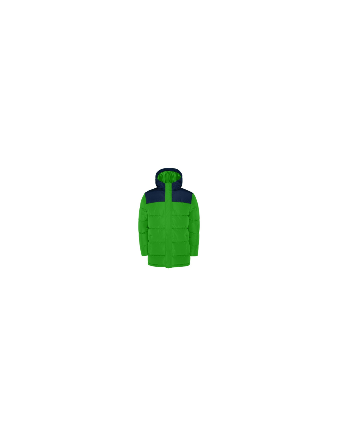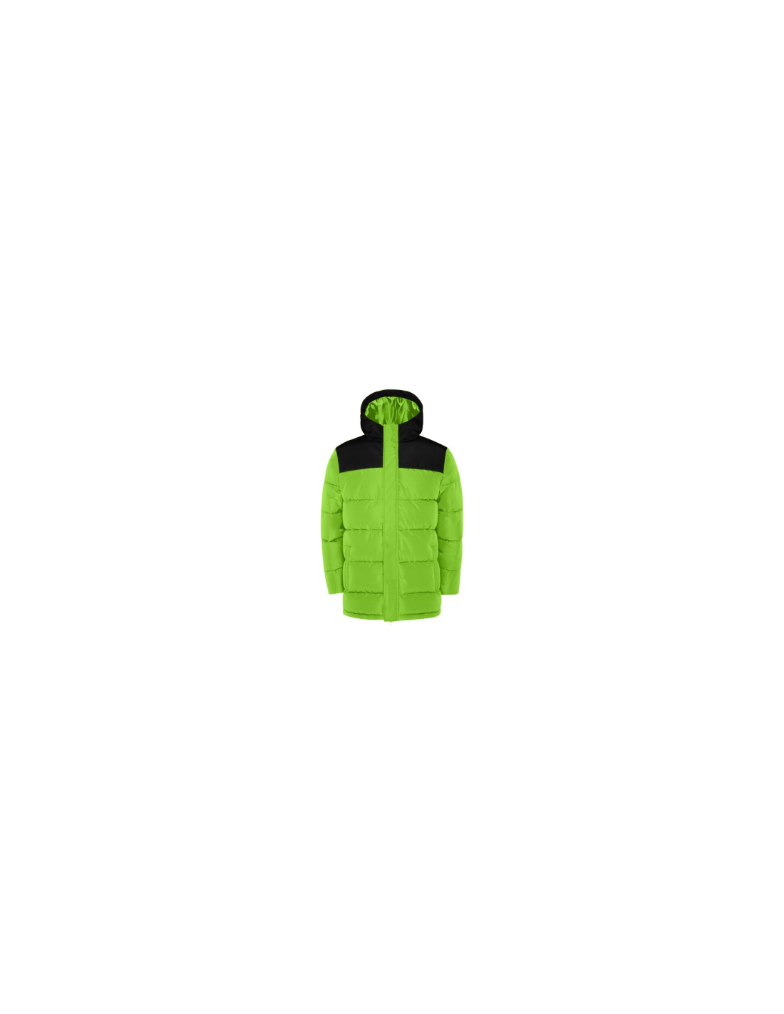Kurtka ocieplana z kapturem. Zamek błyskawiczny z przodu zakryty plisą. Osłona podbródka. Dwie kieszenie boczne zapinane na zamek błyskawiczny. Elastyczne mankiety Dostęp do personalizacji na plecach i po lewej stronie klatki piersiowej.